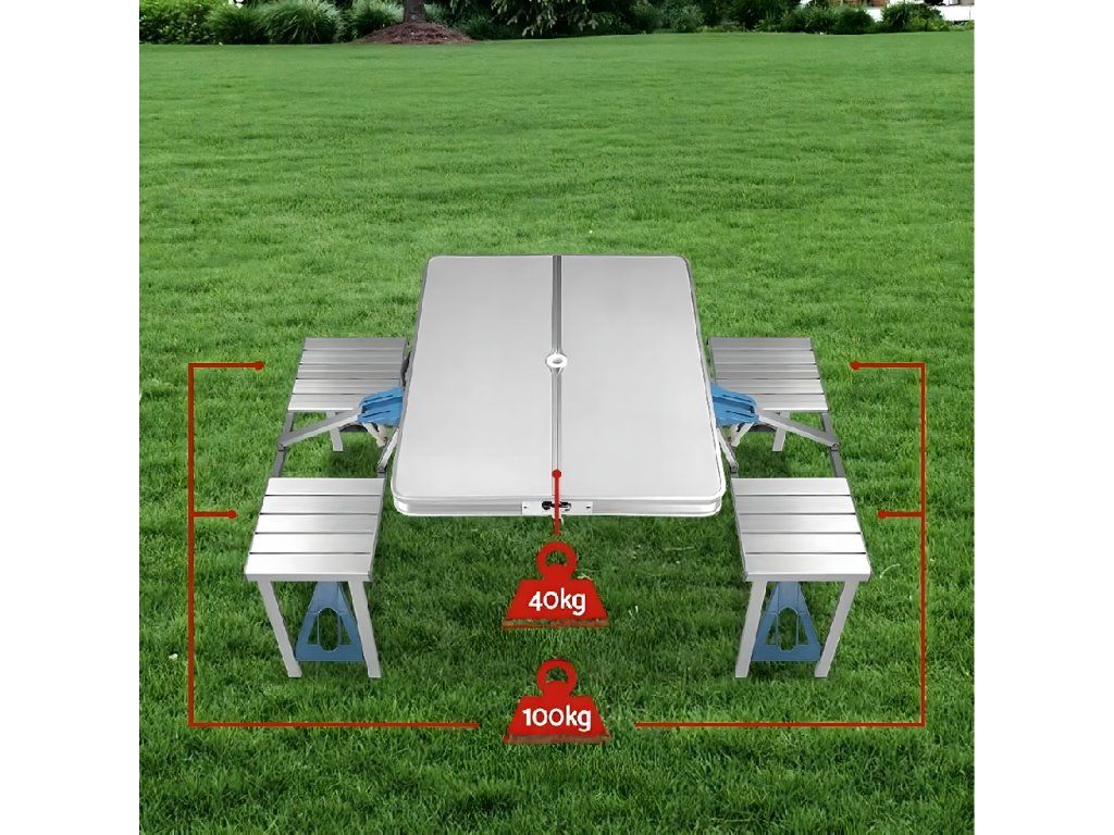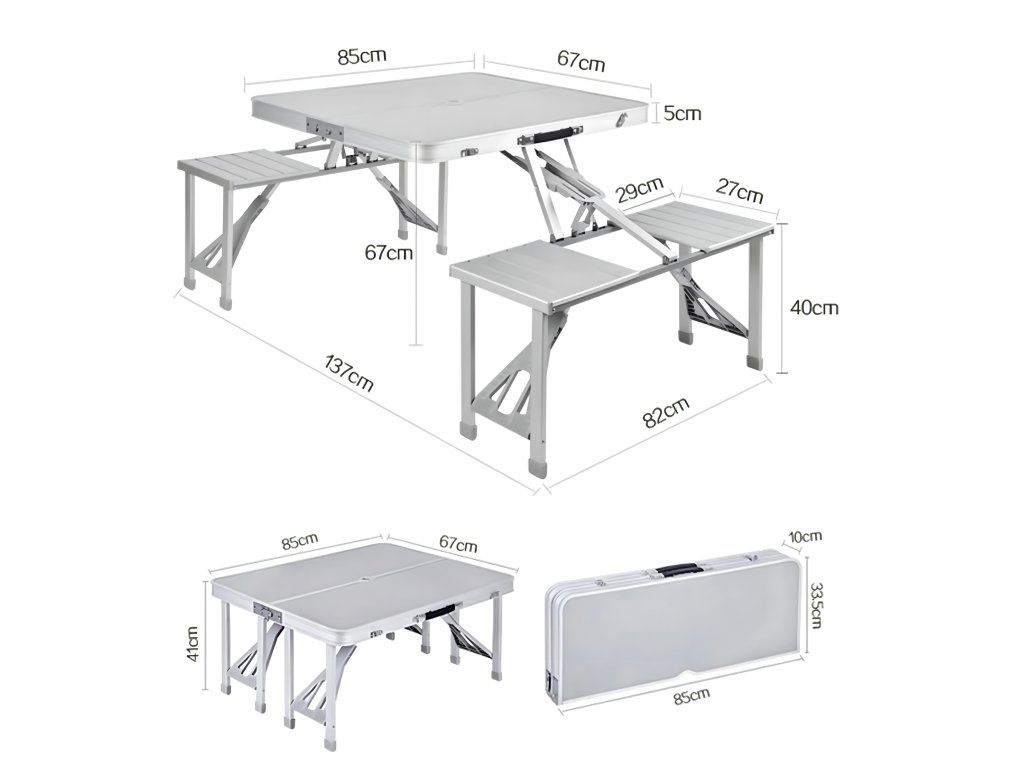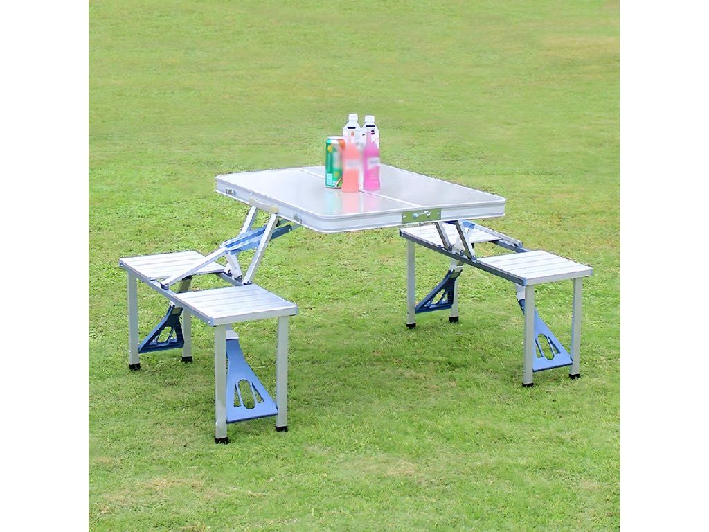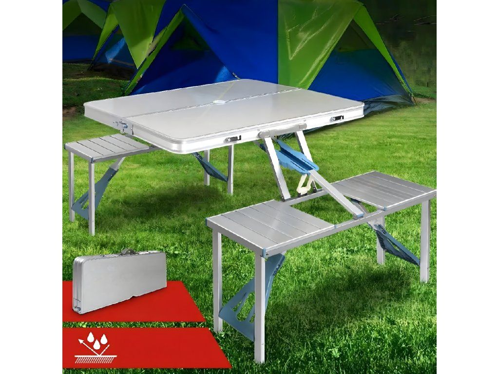 Skládací stolek, turistický a kempingový hliníkový cestovní stolek s lavicemi