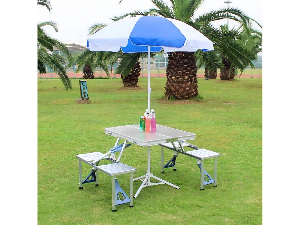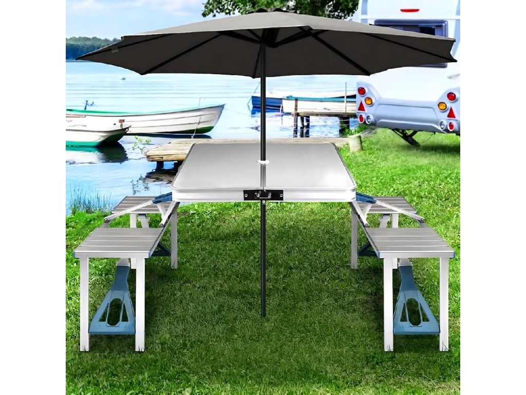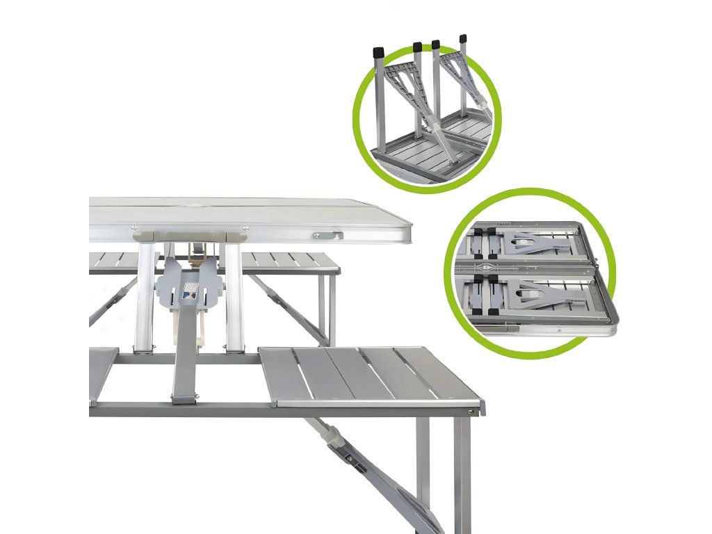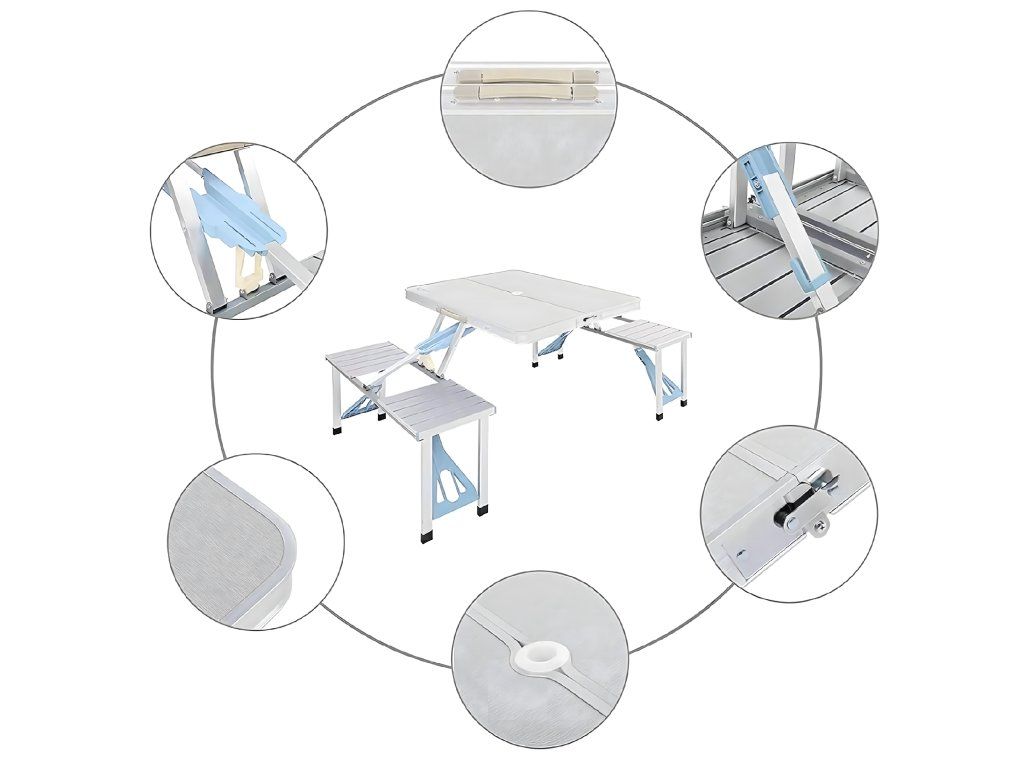 Skládací stolek, turistický a kempingový hliníkový cestovní stolek s lavicemi