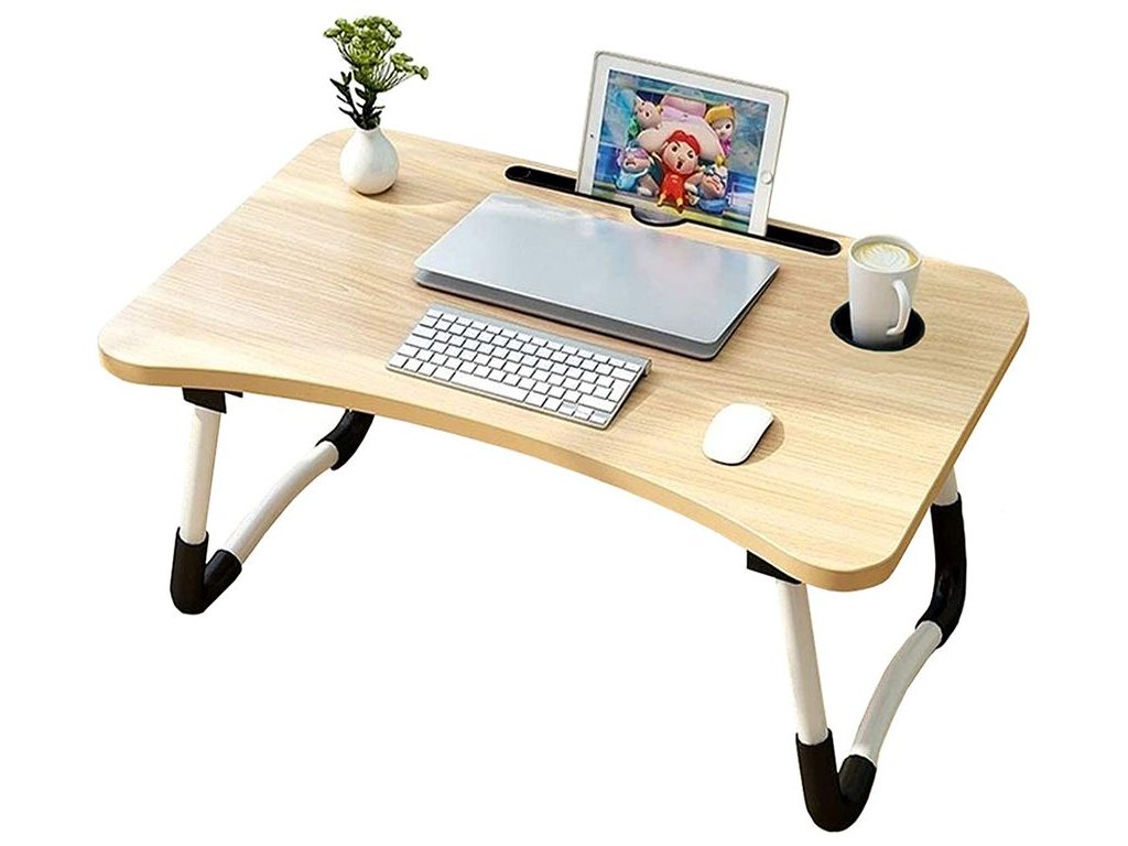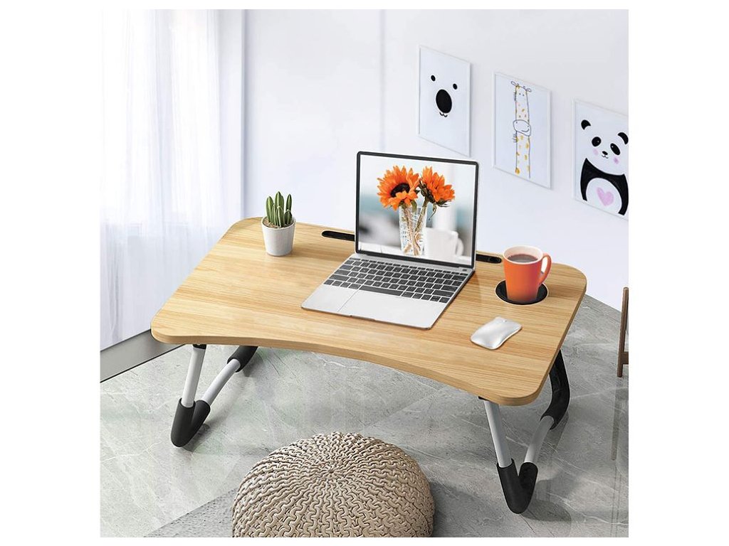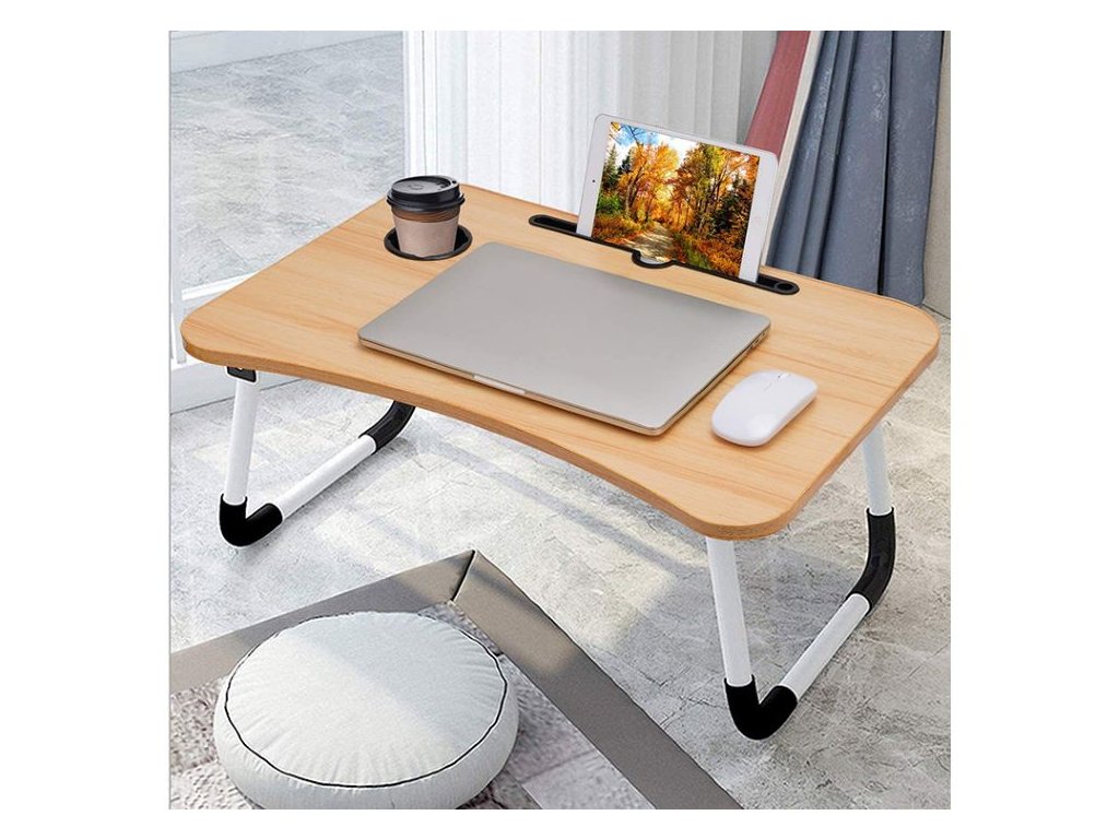 Díky stolu můžete pracovat kdekoli : na posteli, pohovce, křesle. Stolek je vybaven prostorem pro šálek a tablet . V místě pro tablet je otvor , který nám umožní nasměrovat nabíječku .