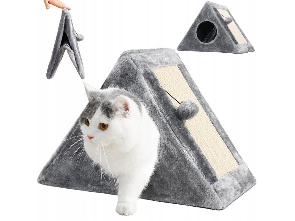 Škrabadlo je vyrobeno z vysoce kvalitních materiálů, které zajišťují odolnost a stabilitu. Pevná konstrukce ve tvaru trojúhelníku zaručuje, že vaše kočka bude moci volně škrábat, skákat a hrát si bez obav z převrácení.