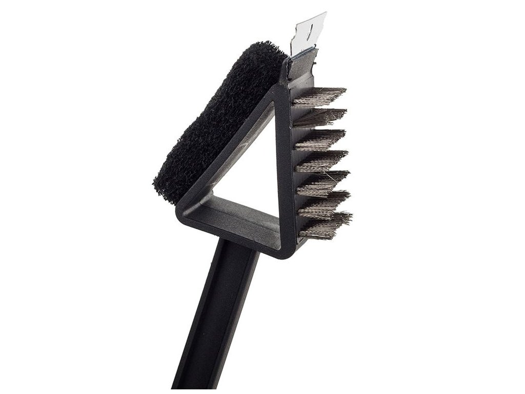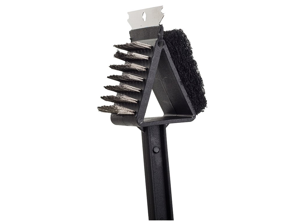 Kartáč je vyroben z velmi odolného a pevného drátu, který umožňuje důkladné čištění grilu , a ocelová škrabka umožňuje důkladnější čištění. Kromě toho je zařízení vybaveno houbou.