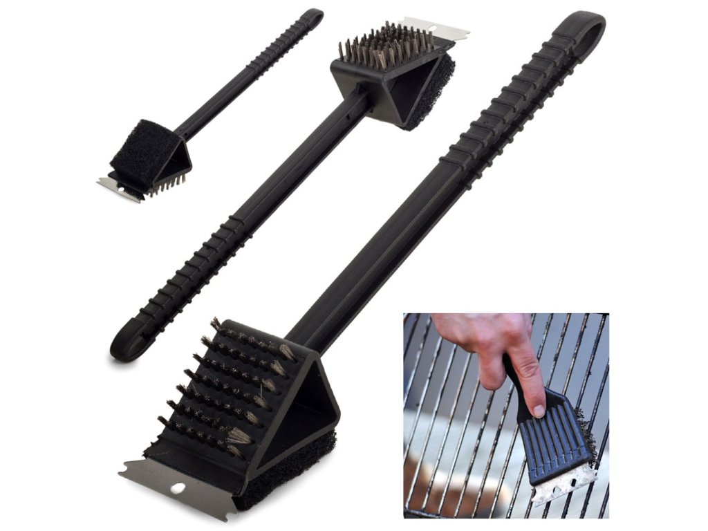 Škrabka na gril 3v1, kartáč s ocelovou škrabkou - černá
