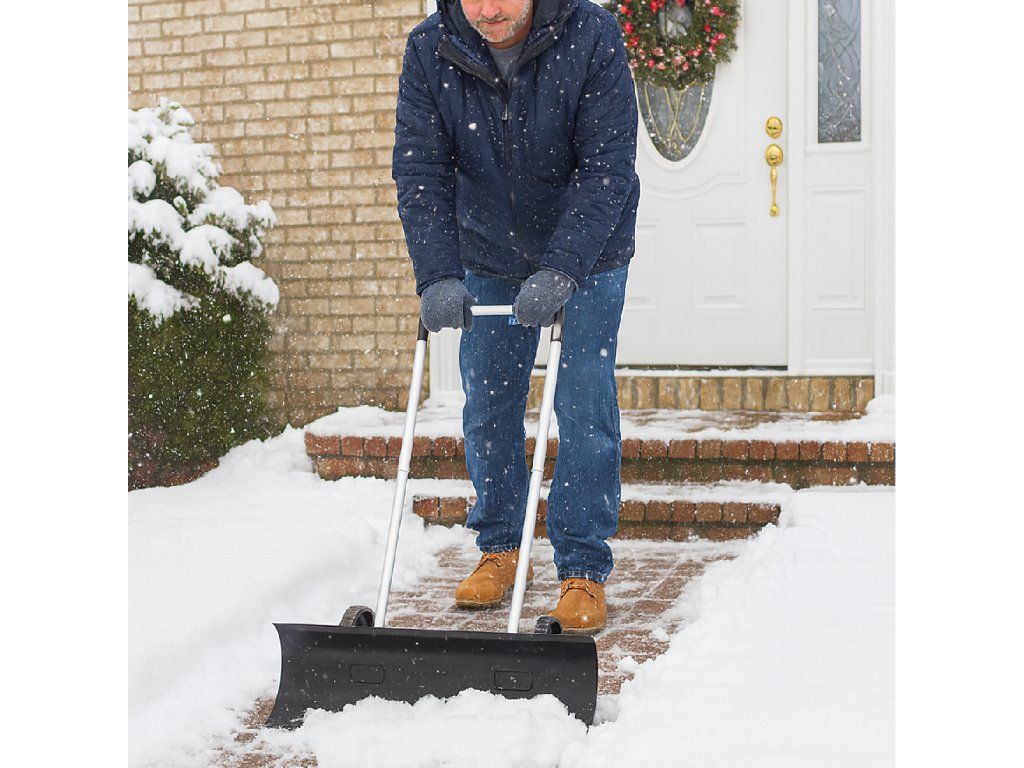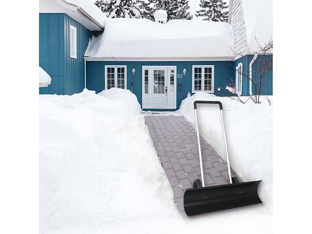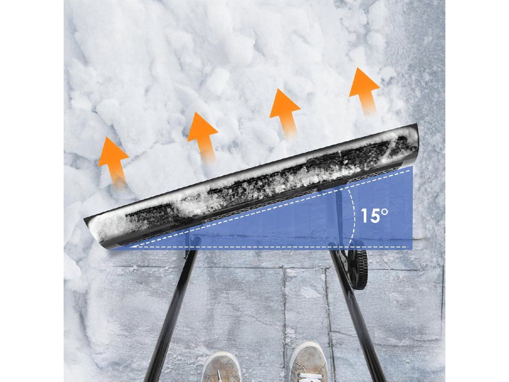 Bez námahy a bez bolesti zad – díky konstrukci na kolečkách sníh odhrnujete, místo abyste ho zvedali.