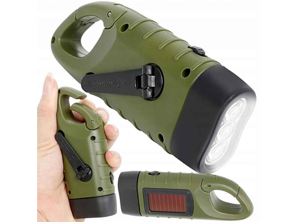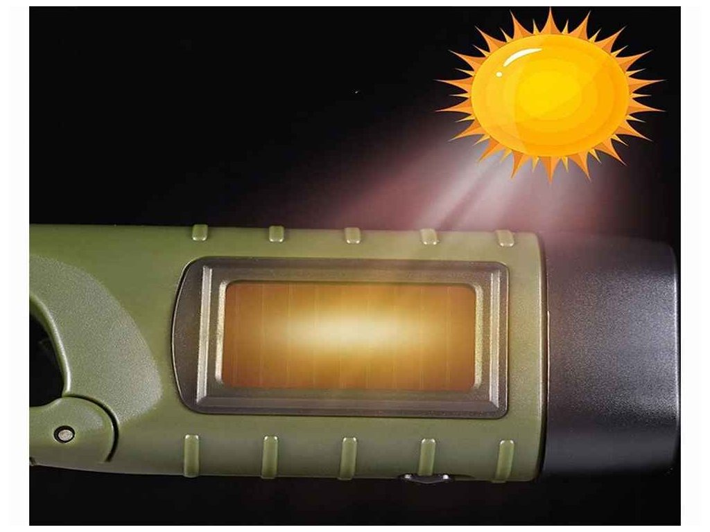 Přenosná dynamo svítilna s přídavným solárním panelem. S touto svítilnou nikdy nezůstanete bez zdroje světla, a to ani v extrémních podmínkách. Ideální pro kempování, turistiku nebo nouzové použití.