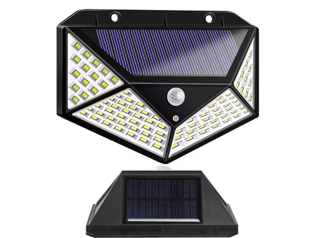Solární lampa je zařízení napájené solárním panelem , které zaručuje osvětlení bez přídavného zdroje energie. Je vybavena velmi jasným panelem 100 LED bodů se silným světelným proudem a pohybovým senzorem.
