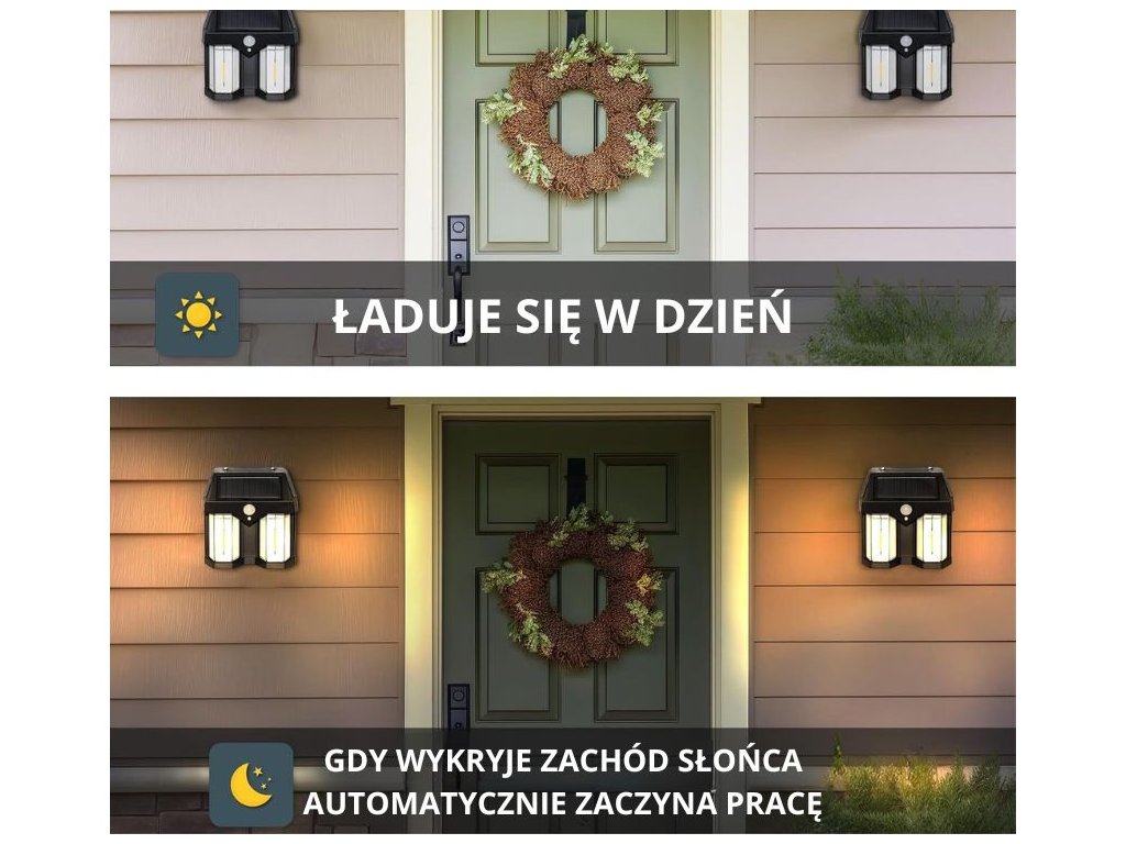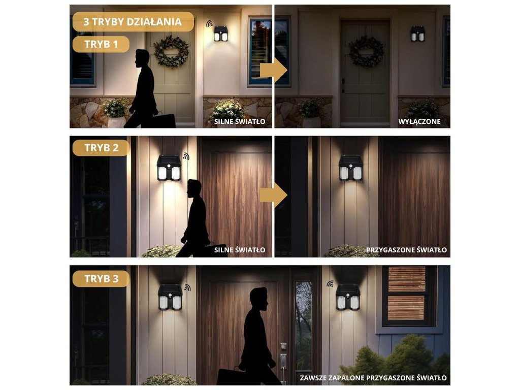 SOLÁRNÍ LAMPA SE SOUMRAKOVÝM SENZOREM POHYBU 3 REŽIMY VODOTĚSNÁ 1200 LM