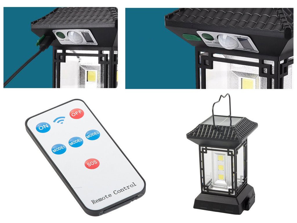 Solární lampa se soumrakovým senzorem pohybu 5 režimů 60 led cob s dálkovým ovládáním