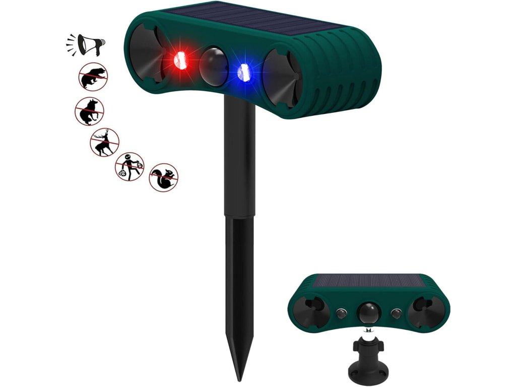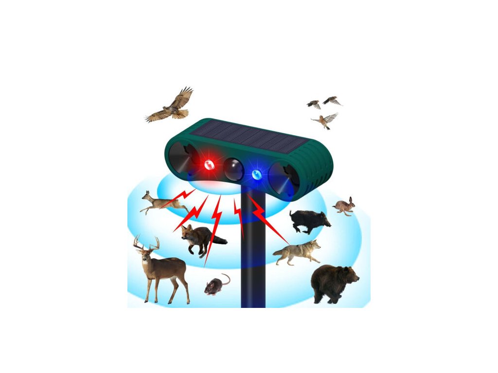 Chraňte svou zahradu, dvůr nebo sad před nezvanými zvířaty pomocí solárního ultrazvukového odpuzovače zvířat.