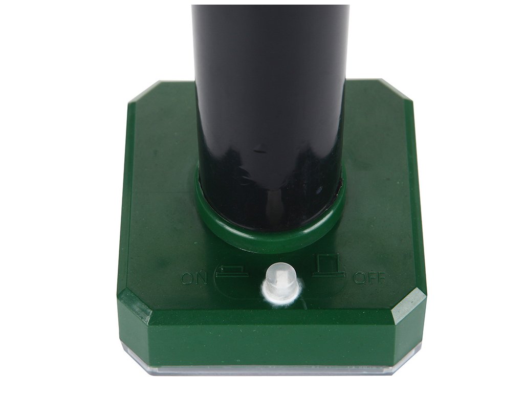 Solární panel umístěný na horní straně jednotky sbírá energii ze slunečních paprsků po celý den, čímž zajišťuje fungování odpuzovače.