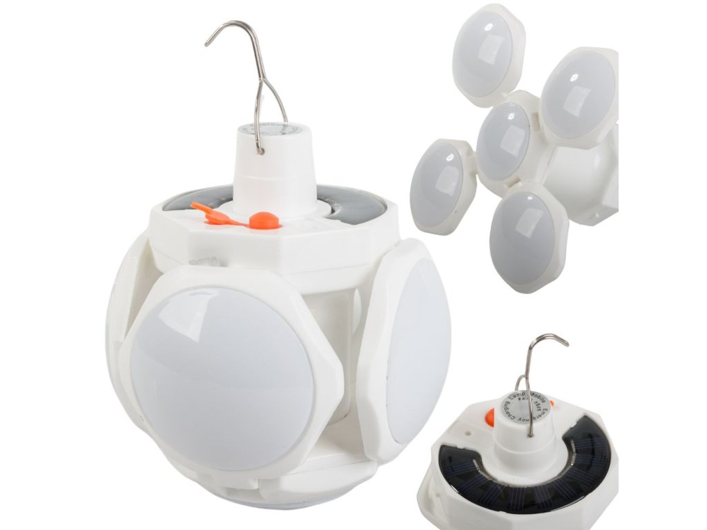 Solární kempingová lampa je funkční a energeticky úsporný zdroj světla , ideální do stanu, zahrady, altánu, kempu nebo garáže. Je vybavena výkonnými LED diodami, které zajišťují jasné a rovnoměrné osvětlení, které se perfektně hodí jak pro odpočinek na čerstvém vzduchu, tak i pro nouzové situace.