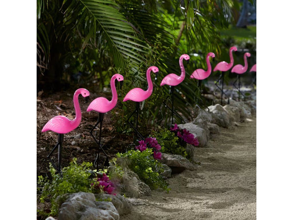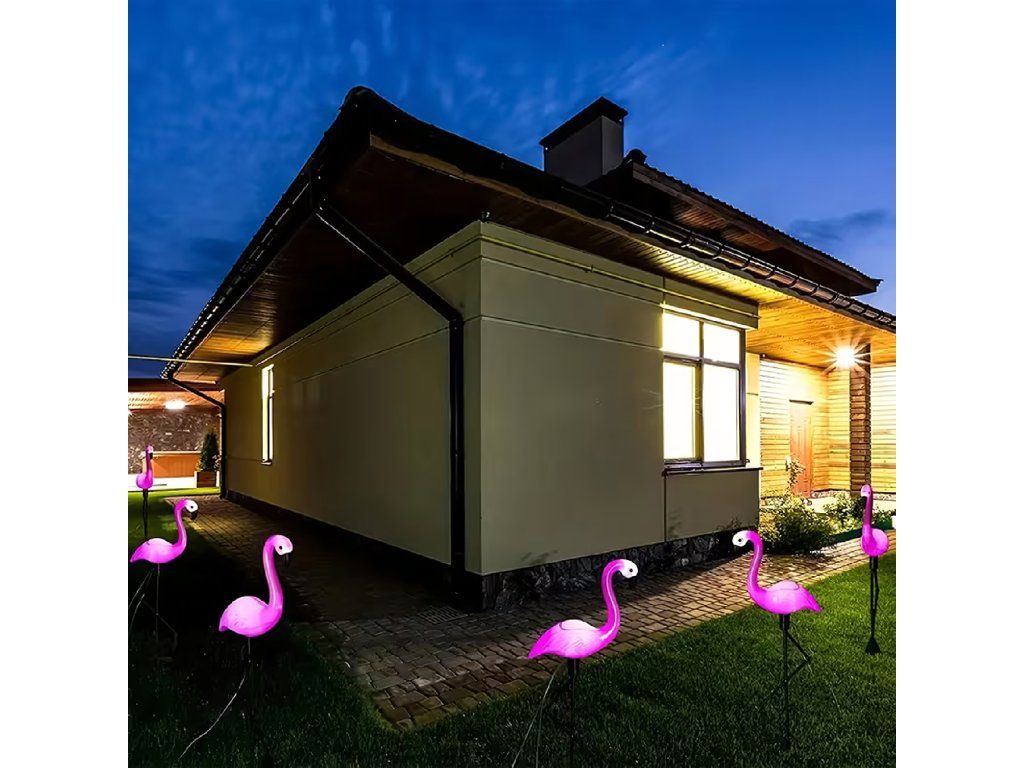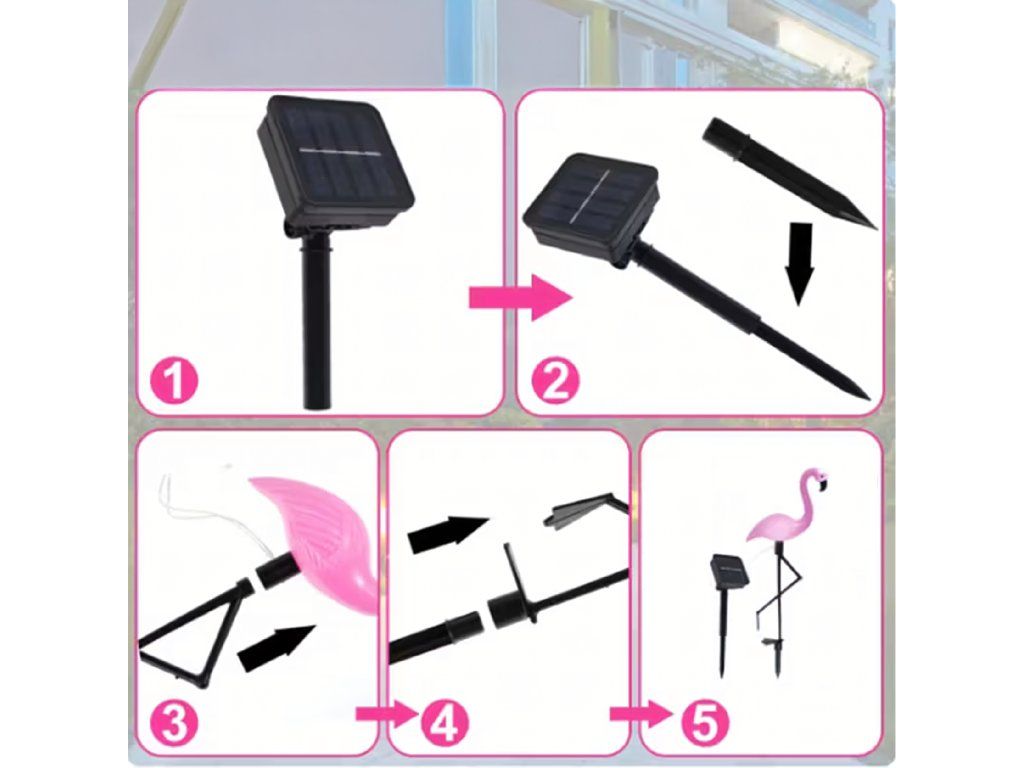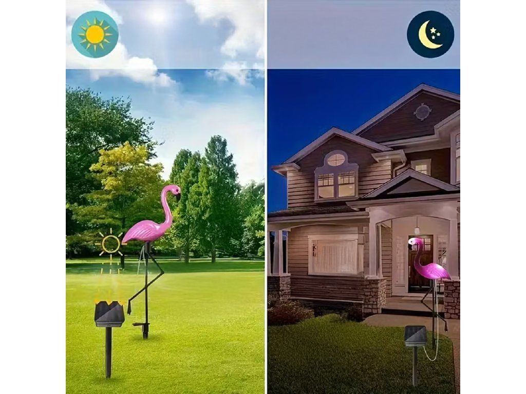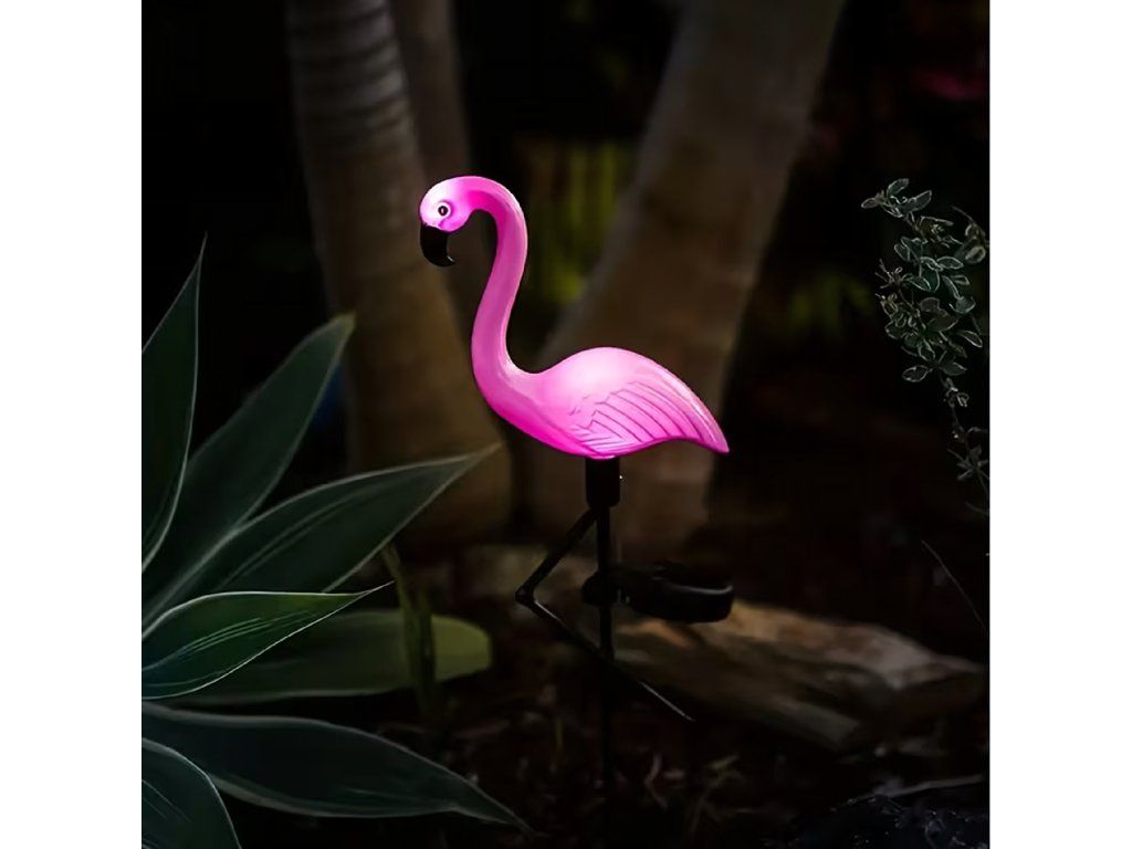 Použití solární lampy ve tvaru plameňáka: