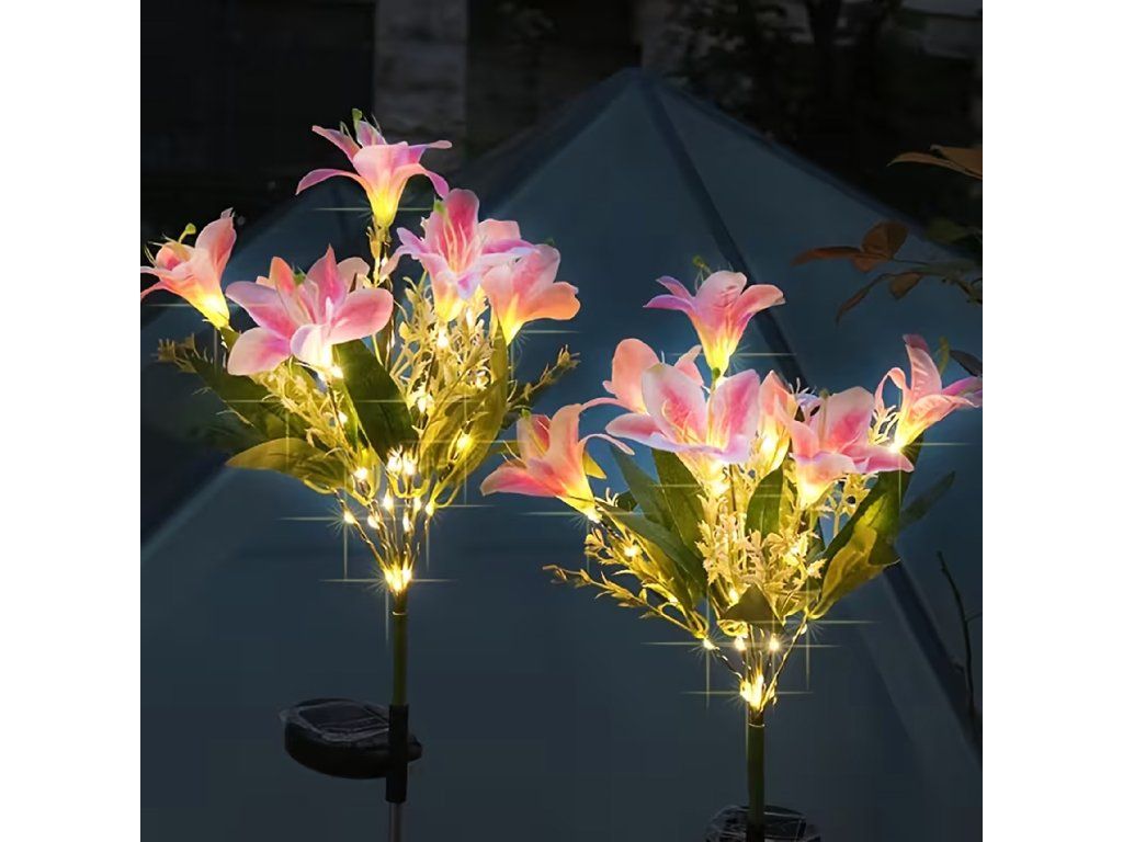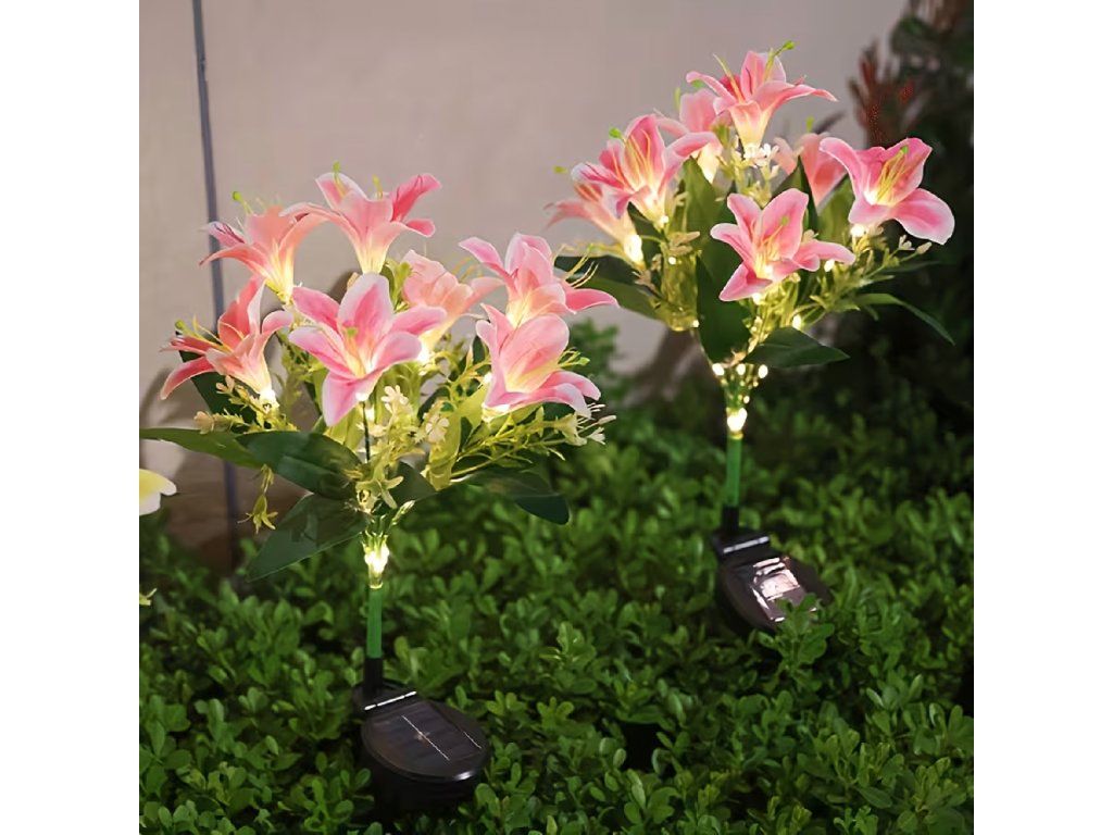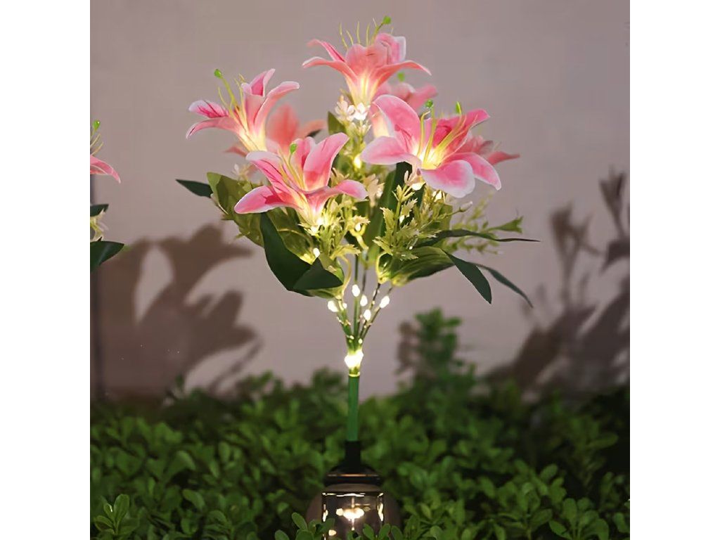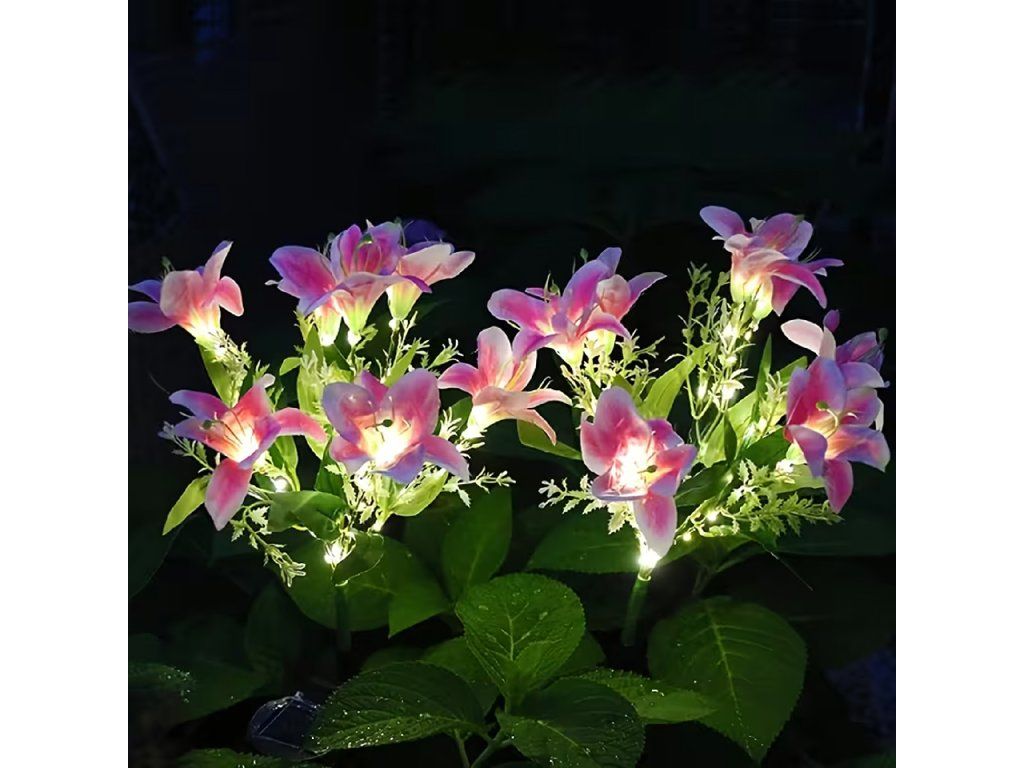 Solární zahradní lampa do země, květ lilie, lilie, dekorace, solární květiny, LED