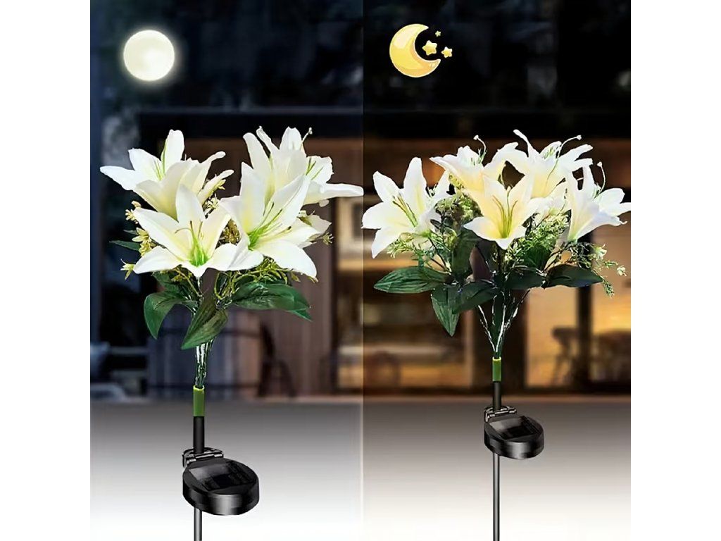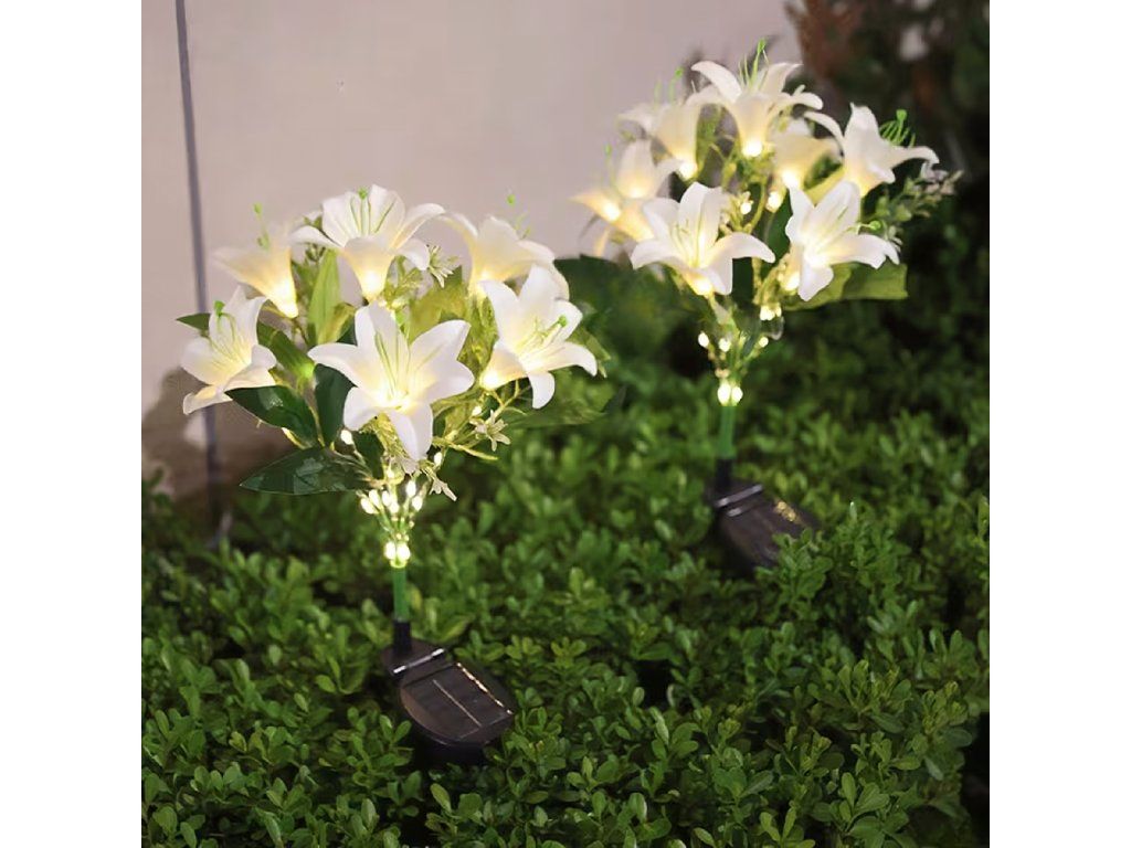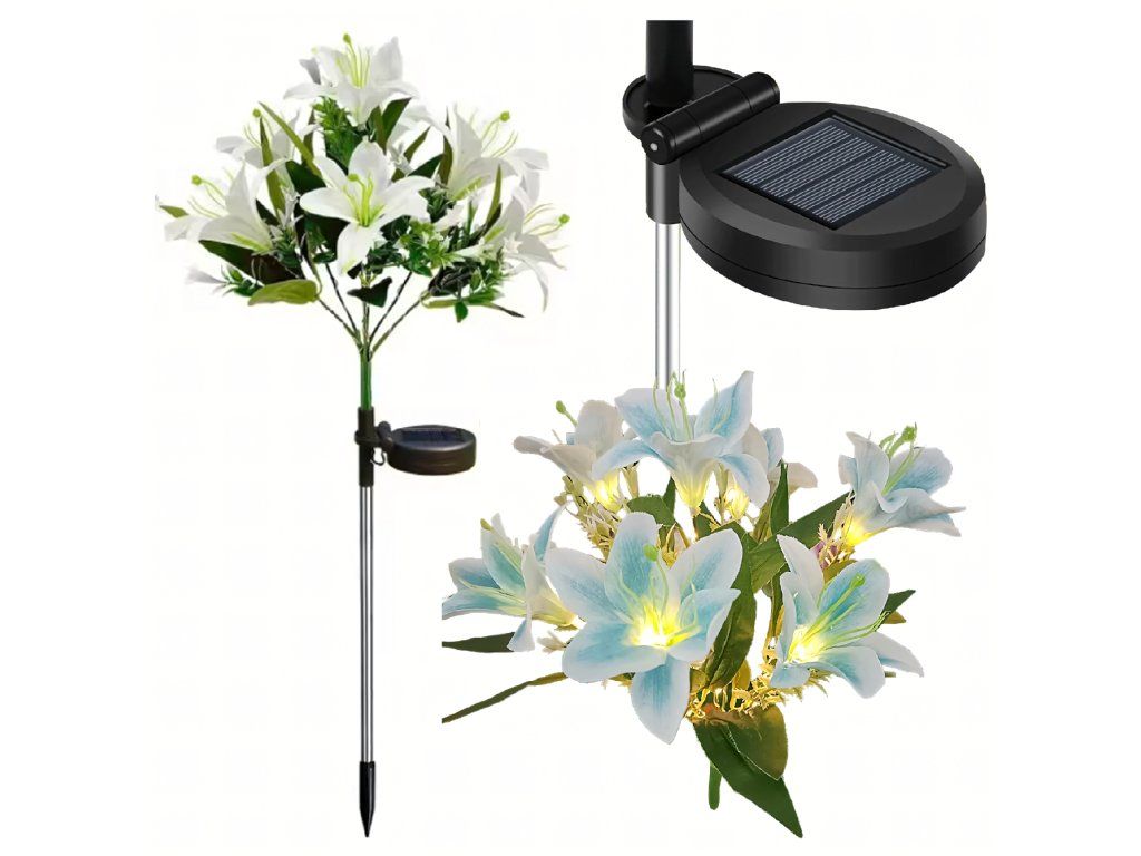 Solární zahradní lampa do země, květ lilie, lilie, dekorace, solární květiny, LED
