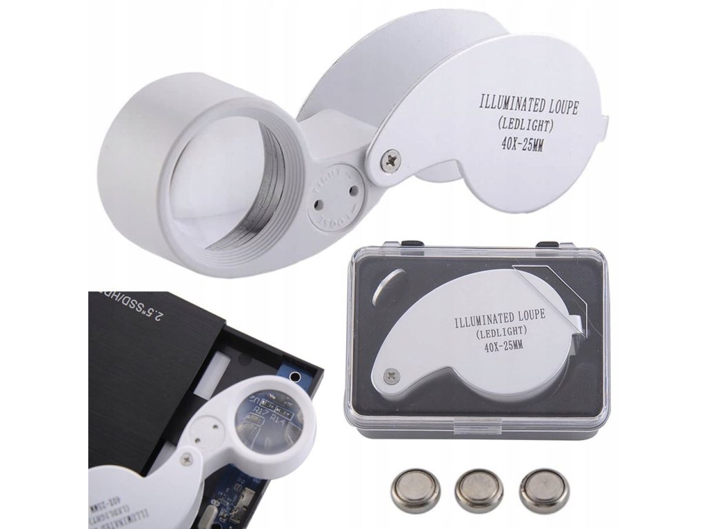 Kapesní bižuterní lupa se zvětšením 40x je ideálním zařízením pro každodenní použití. Mohou jej používat klenotníci, numismatici, servisní technici elektroniky atd.