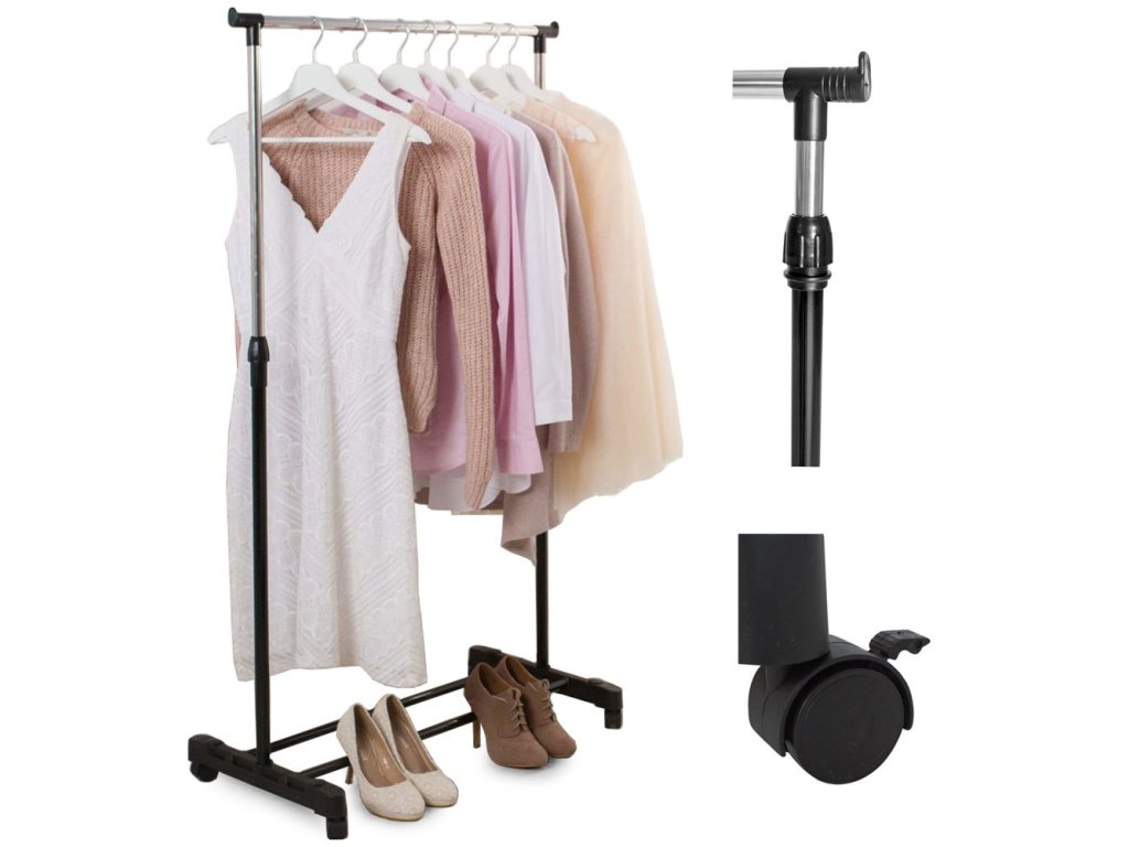 Teleskopický věšák na kolečkách je ideálním řešením všude tam, kde je potřeba šikovný věšák na oblečení. Ideální pro domácnost, kancelář, obchod nebo kadeřnický salon.