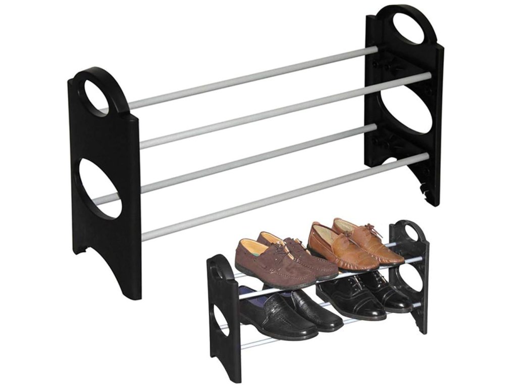 Univerzální stojan na boty se skládá ze dvou spojených bloků a 4 kusů trubek pro 6 párů bot. Stojan lze díky univerzálním dílům rozšířit do libovolné výšky. Zakoupením 2 sad můžete zvětšit polici a zdvojnásobit prostor na boty.