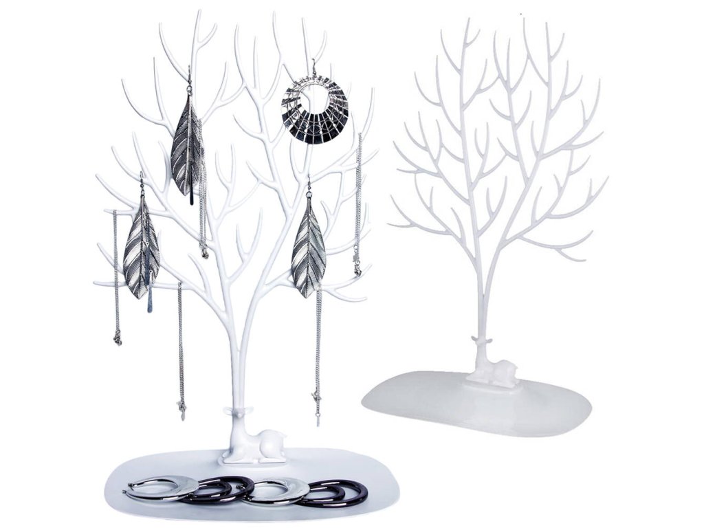 Stojan na šperky, organizér na šperky, jelen, strom života, bílý