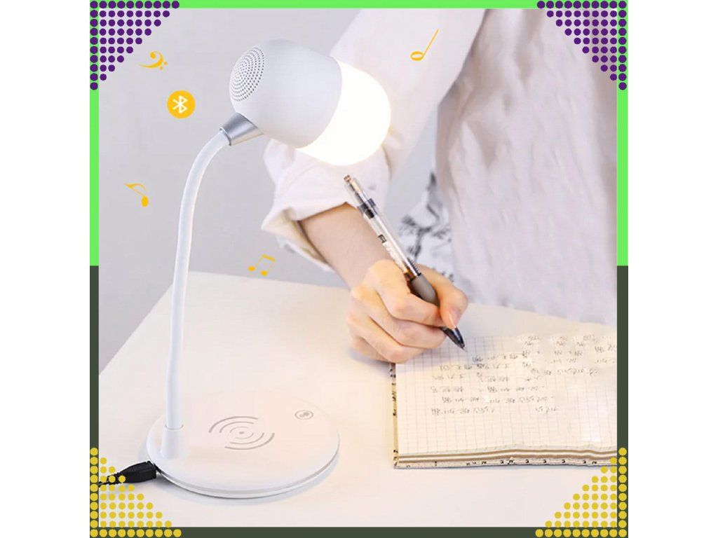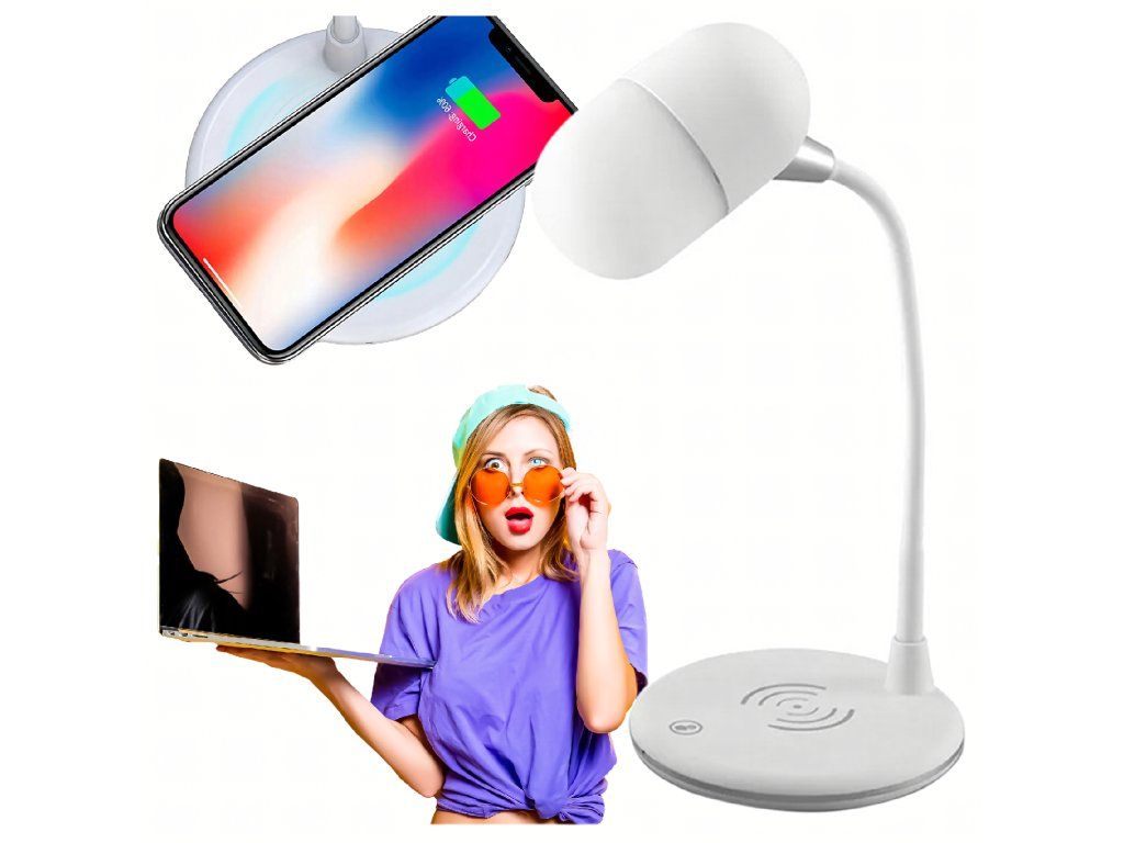 Stolní lampička, noční lampička, indukční nabíječka, Bluetooth reproduktor, škola, studium