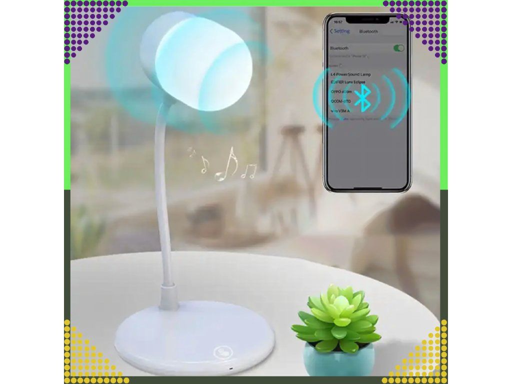 LED stolní lampa s bezdrátovou indukční nabíječkou QI, 3stupňovým nastavením jasu a Bluetooth reproduktorem