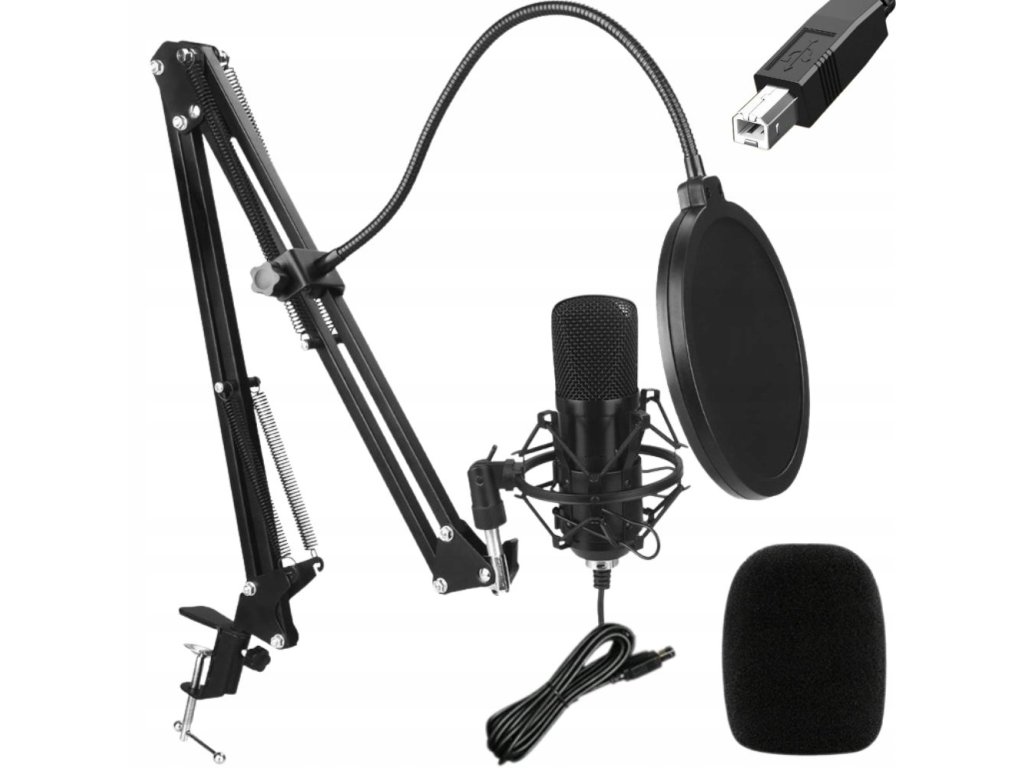 Studiový kondenzátorový USB mikrofon s příslušenstvím