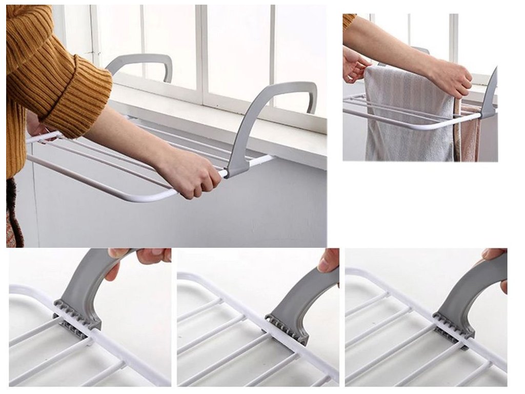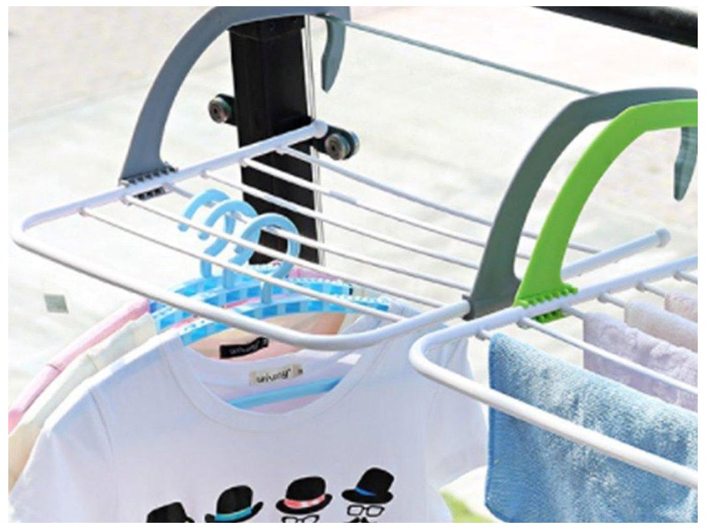 Sušička je určena pro sušení na balkóně, terase, doma nebo na zahradě. Ideální pro každodenní praní . Vybavena nastavitelnými rameny, které lze zavěsit na dveře, radiátory, balkony.