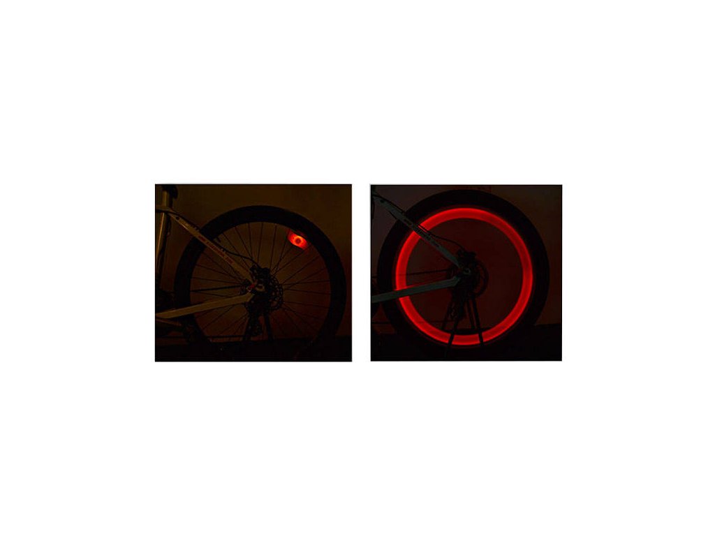 Svítící krytka namontovaná na paprsky kola bicyklu vytváří úžasný světelný efekt. Překryvy vytvářejí za jízdy červené světlo.