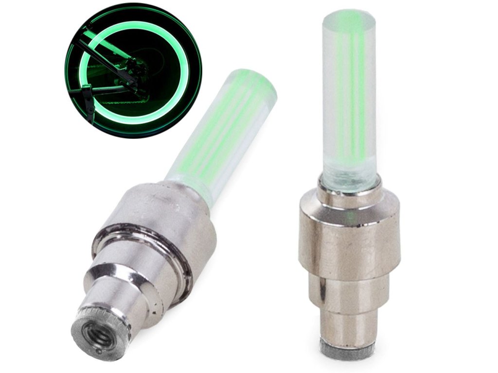 Svítící ventilek na kolo, svítící krytky ventilů, zelená- 2ks