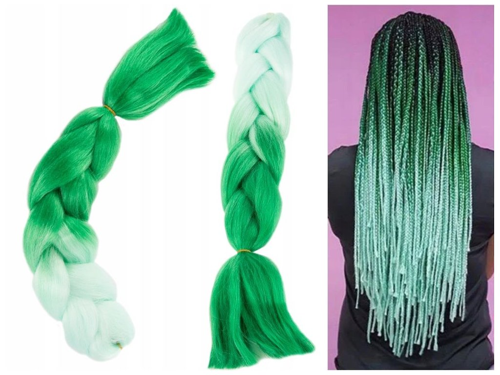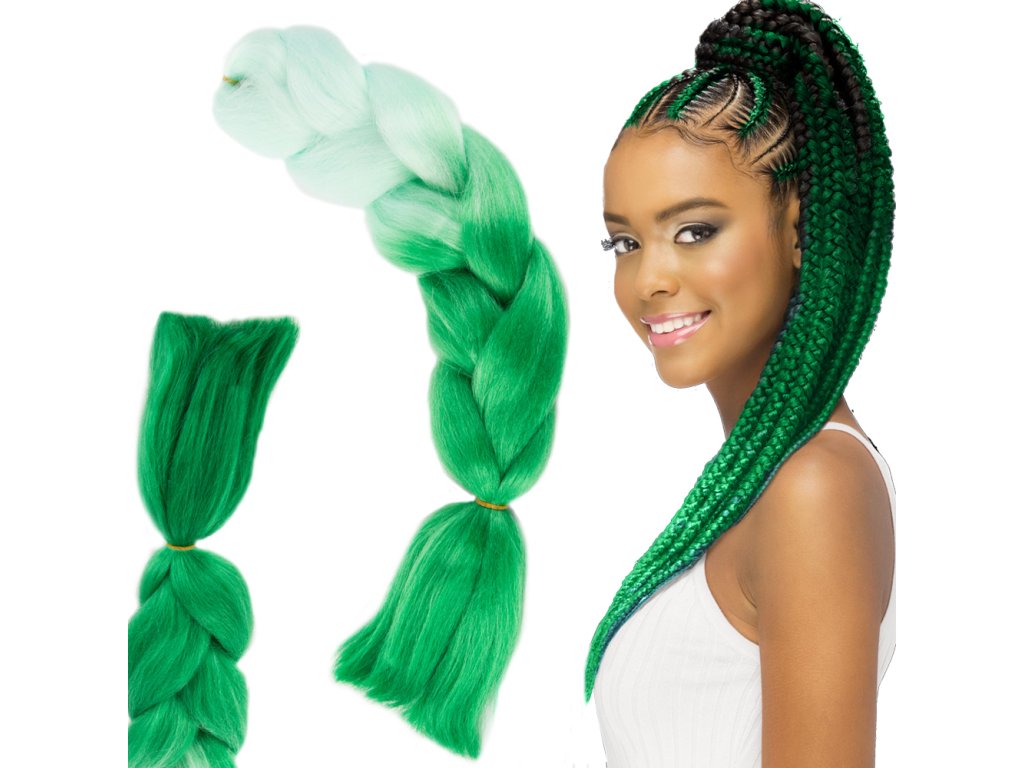 Syntetické vlasy pro barevné ombre copánky, příčesek - zelená