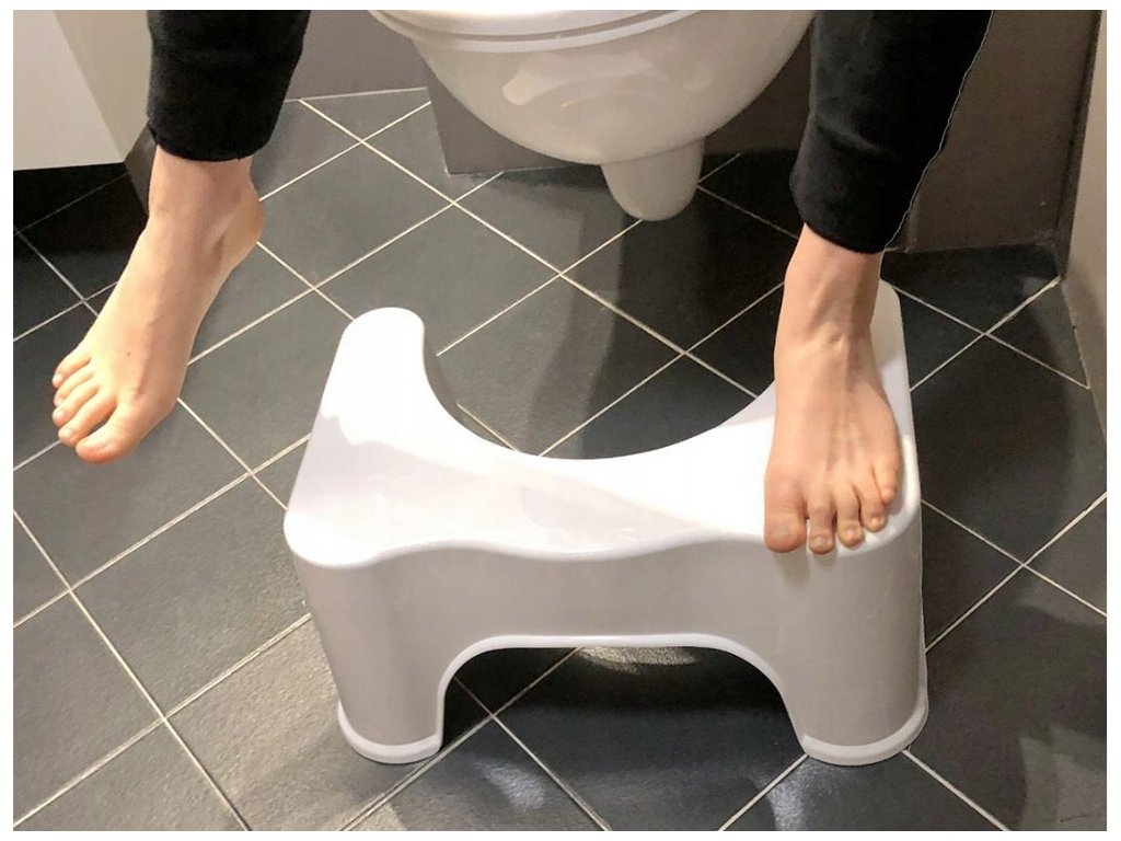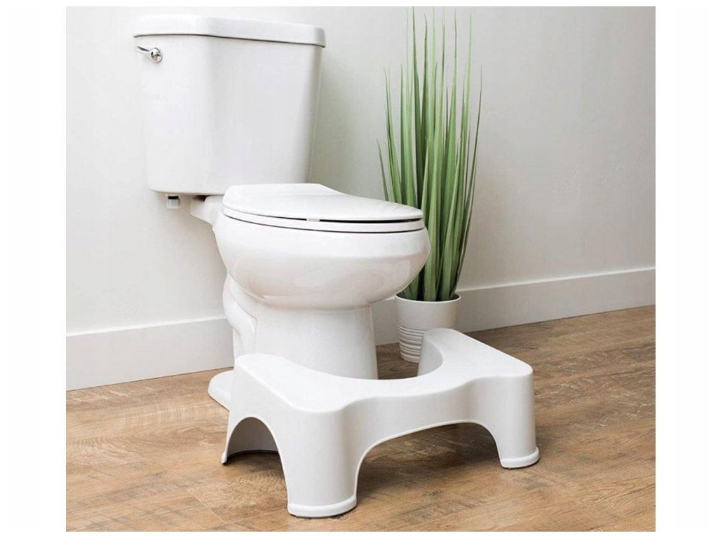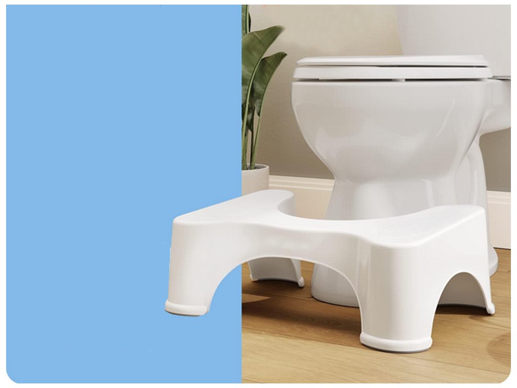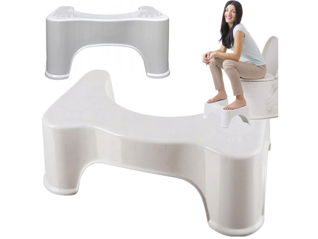 Taburetka do koupelny, bílé WC, opěrka pod nohy na WC