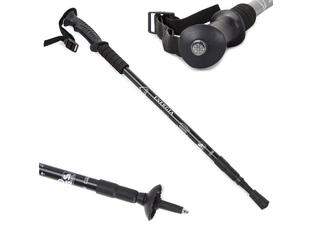 Teleskopická hole, treková hole s kompasem, černá - 1 ks