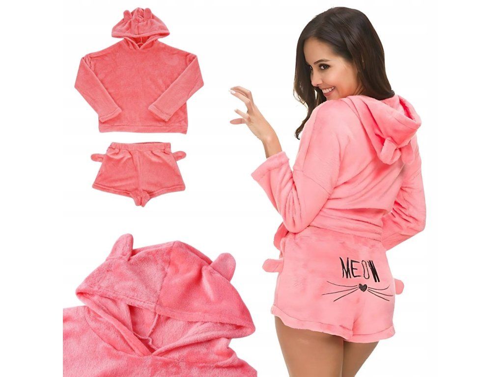 Teplé dámské pyžamo s kapucí, plyšové, vel. M, růžová