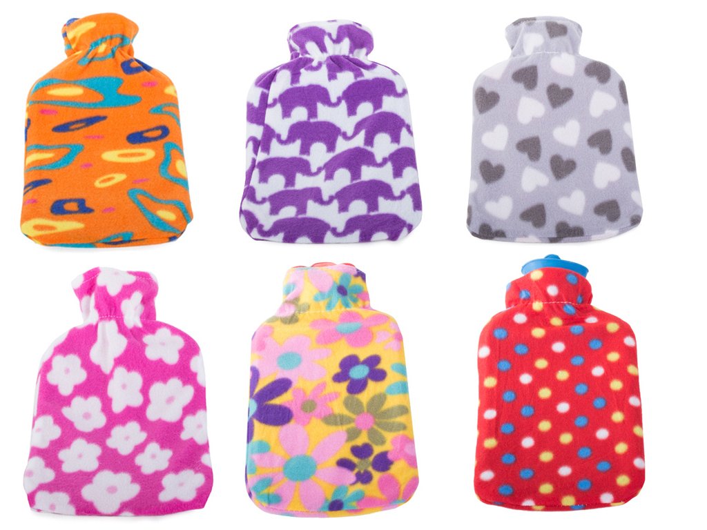 Termofor, ohřívací láhev na horkou vodu v gumovém obalu - mix variant