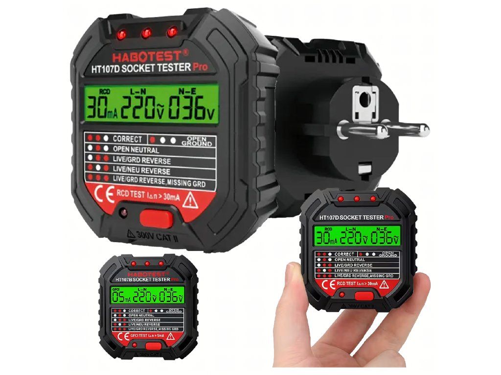 Habotest HT107D – váš osobní strážce elektrické bezpečnosti! Zkontrolujte své zásuvky během několika sekund a chraňte sebe i své zařízení před nebezpečnými poruchami! ⚡