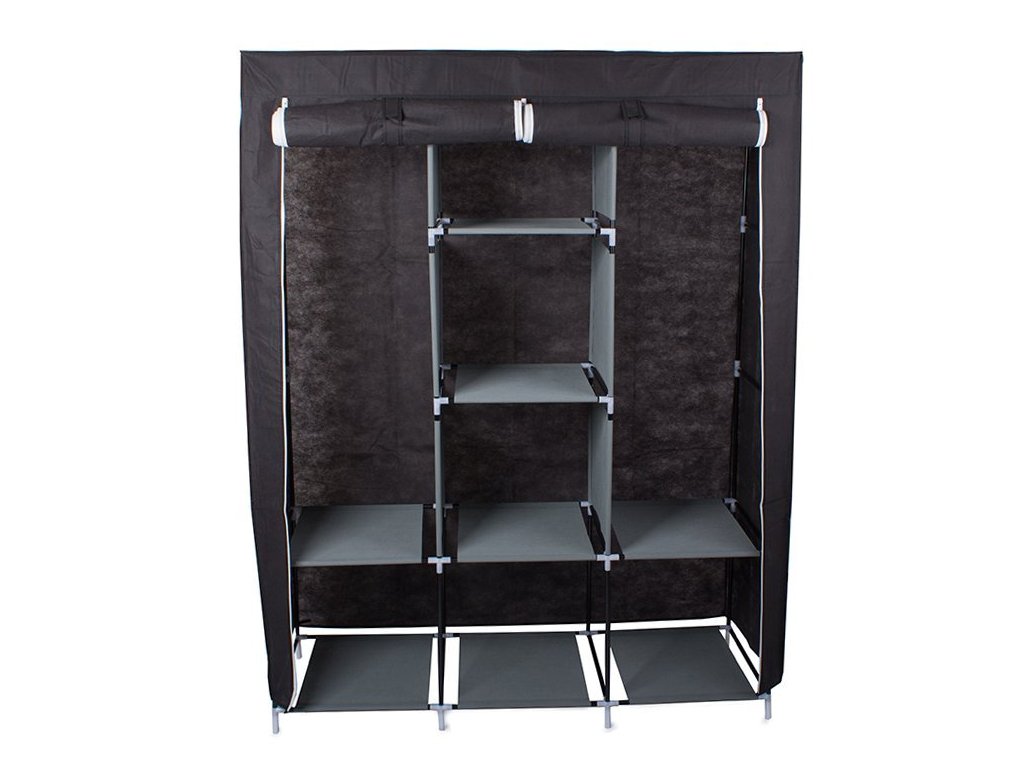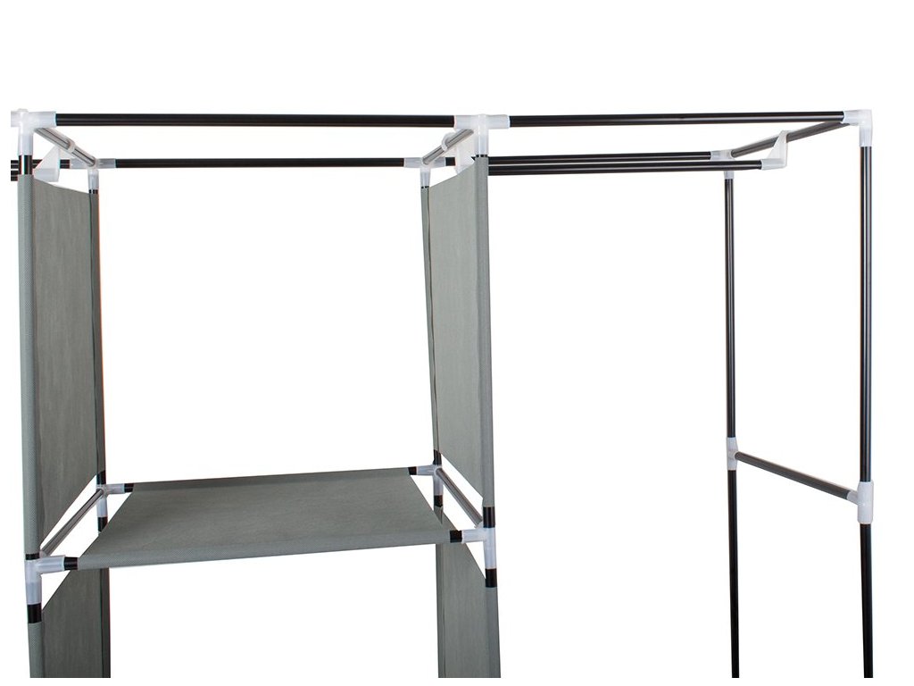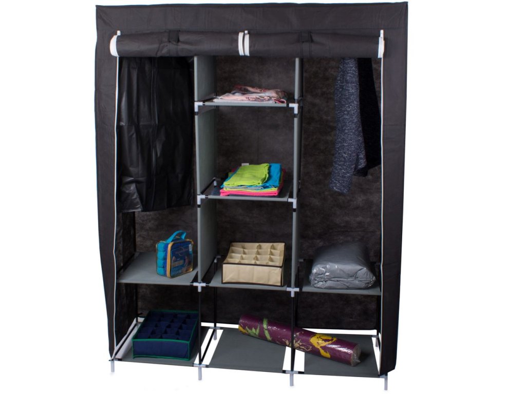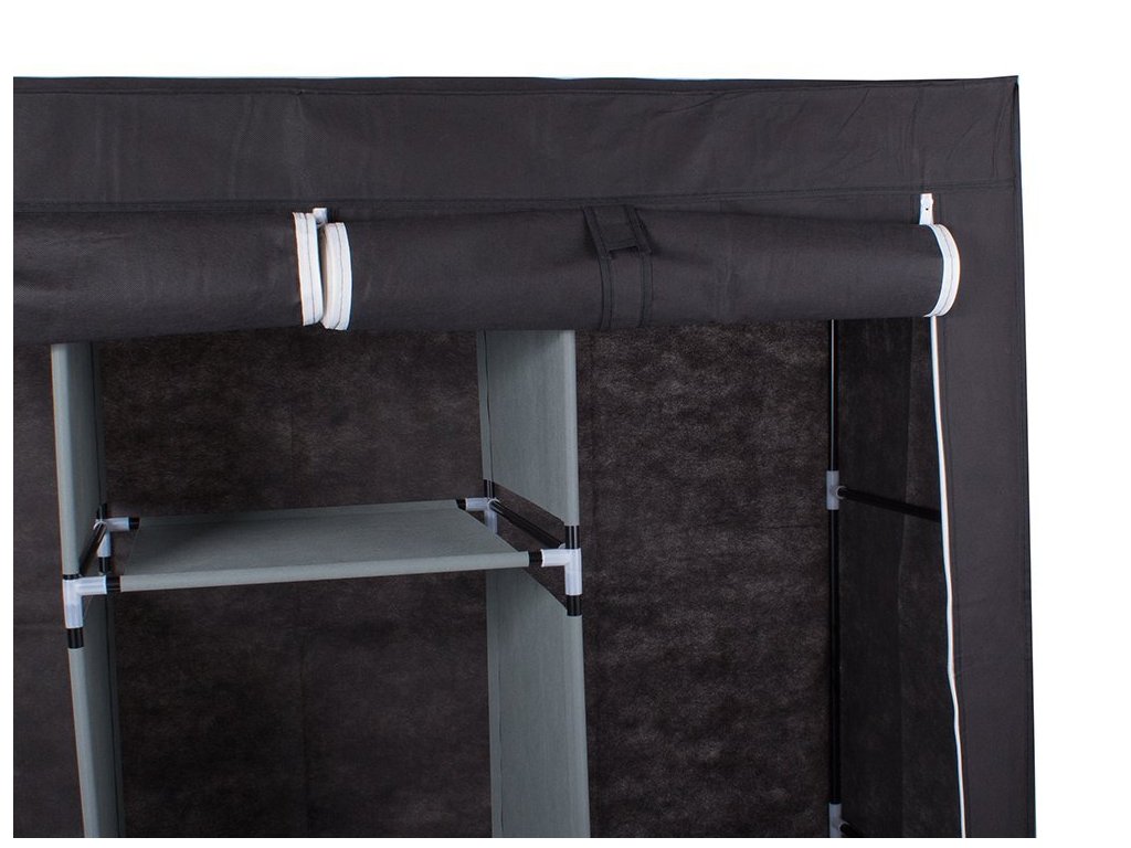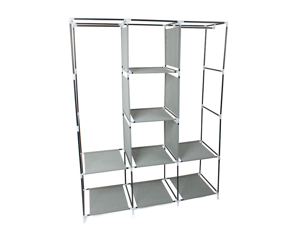 Textilní skříň je ideálním řešením pro ložnice, místo tradičních šatních skříní, pro šatny, pokoje a úložné prostory. Díky své lehké konstrukci, tvořené trubkami, rychloupínacími úchyty a látkou, se rychle skládá bez použití dalších nástrojů.