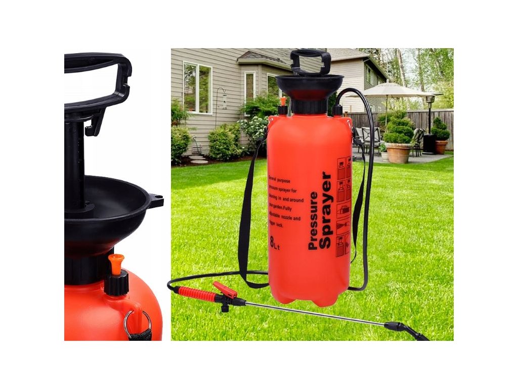 Má 58cm kopí s rukojetí a funkční 120cm hadici. Velká 8litrová nádrž umožňuje efektivní provoz bez nutnosti častého plnění postřikovače.