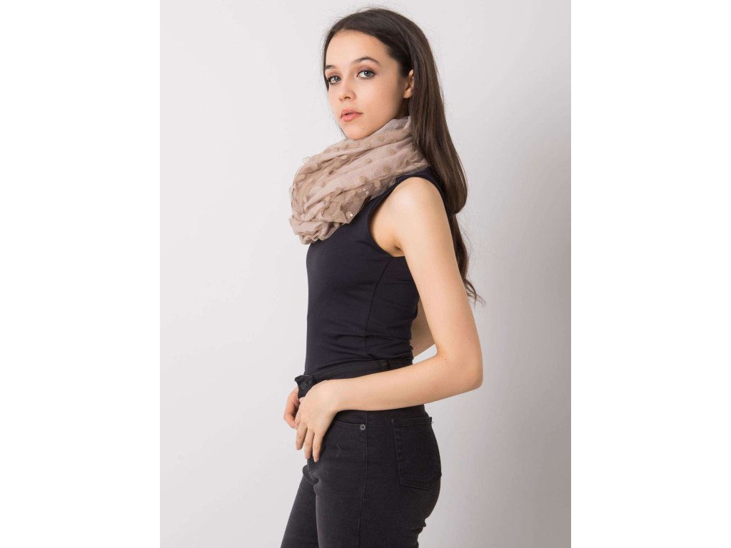 Tmavě béžový šátek s puntíky.