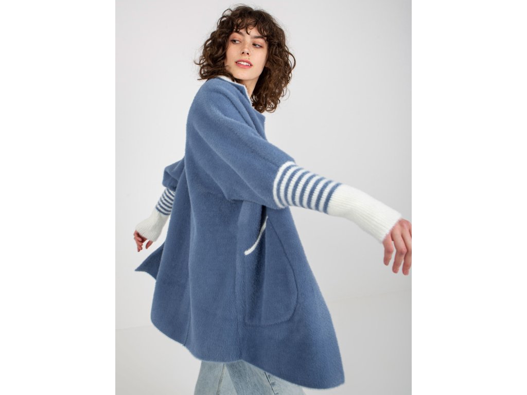 Tmavě modrý dámský kabát z alpaky s kapsami.
