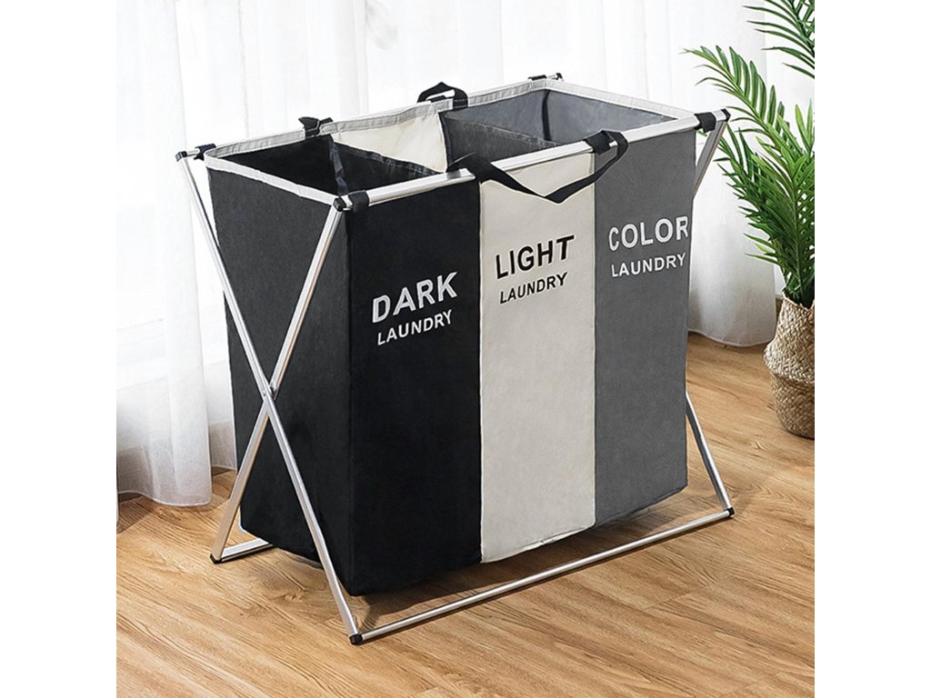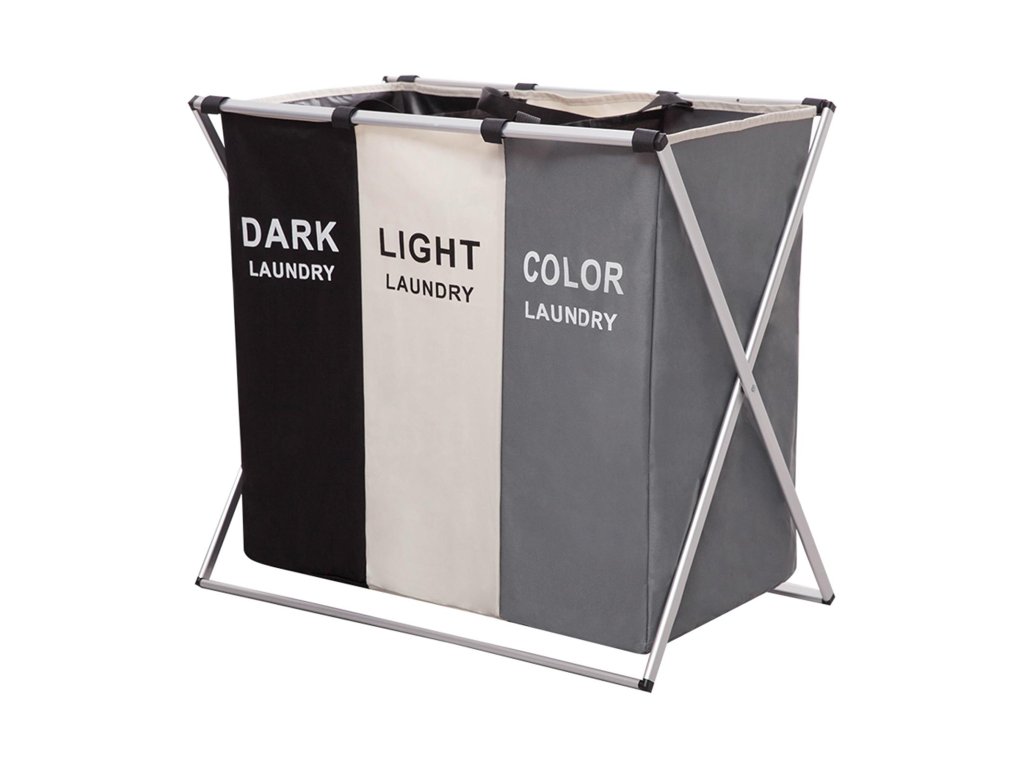 Třídicí koš na prádlo se 3 sekcemi – skládací stojan s přihrádkami na světlé, tmavé a barevné oblečení