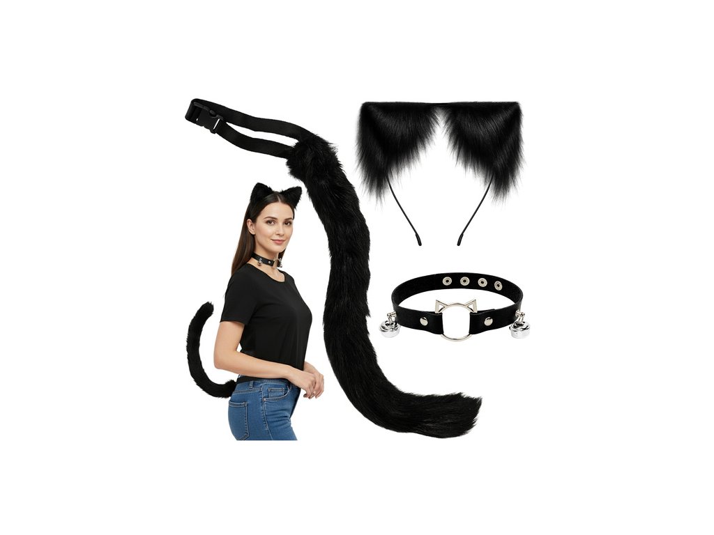Trojdílný kostým kočky/lišky, černý