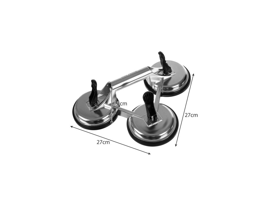 - GUMOVÉ PŘÍSAVKY 120 mm – zařízení má 3 gumové přísavky, které zajišťují bezpečné uchopení a snadné přenášení plochých předmětů.