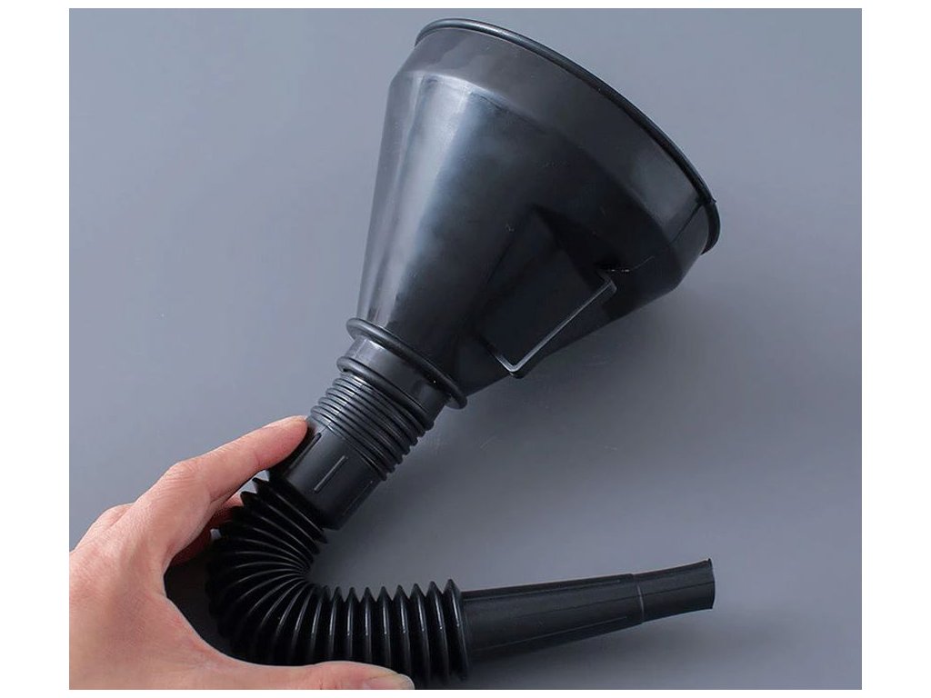Nálevka je rozdělena na dvě části. Lze jej použít samostatně nebo s harmonikovým nástavcem, který usnadňuje přesné nalévání tekutin.