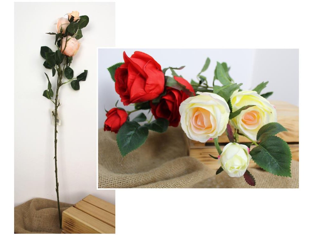 Umělá růže HIGH 80 cm (3 hlavy 4-8-9 cm) - mix barev