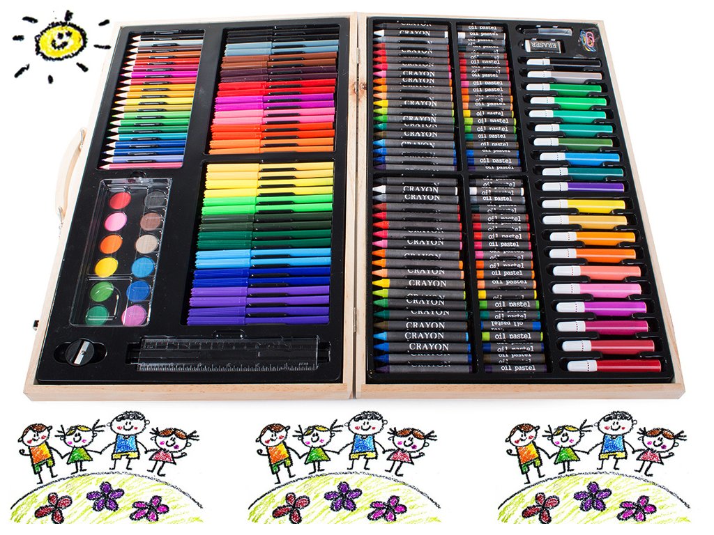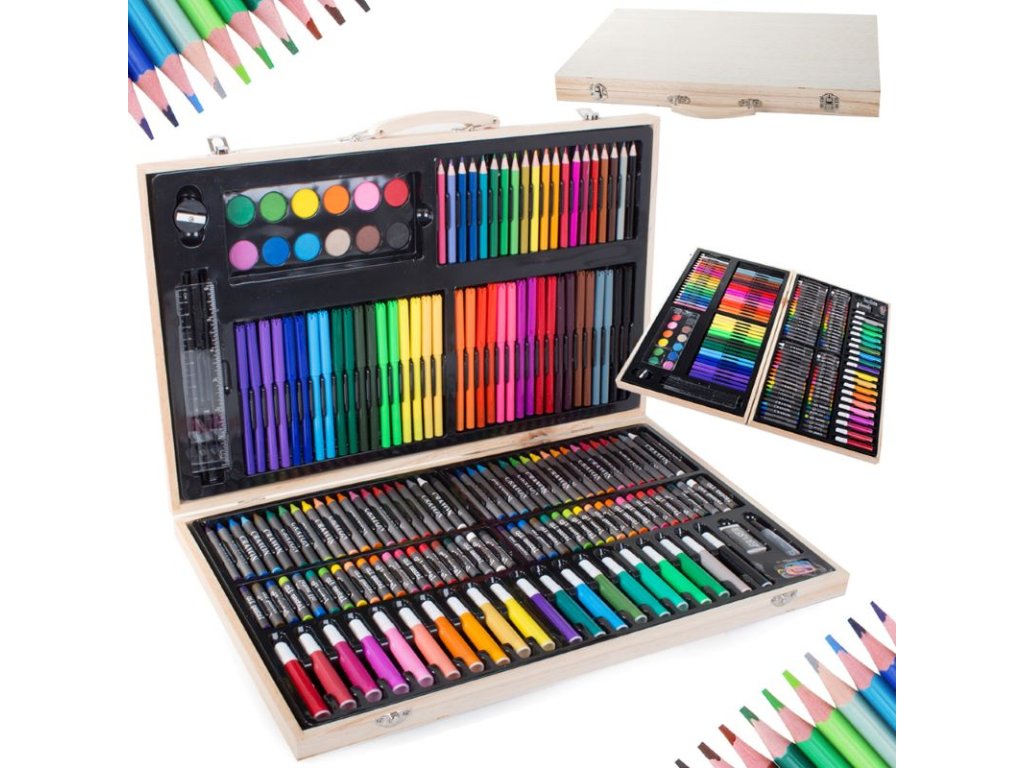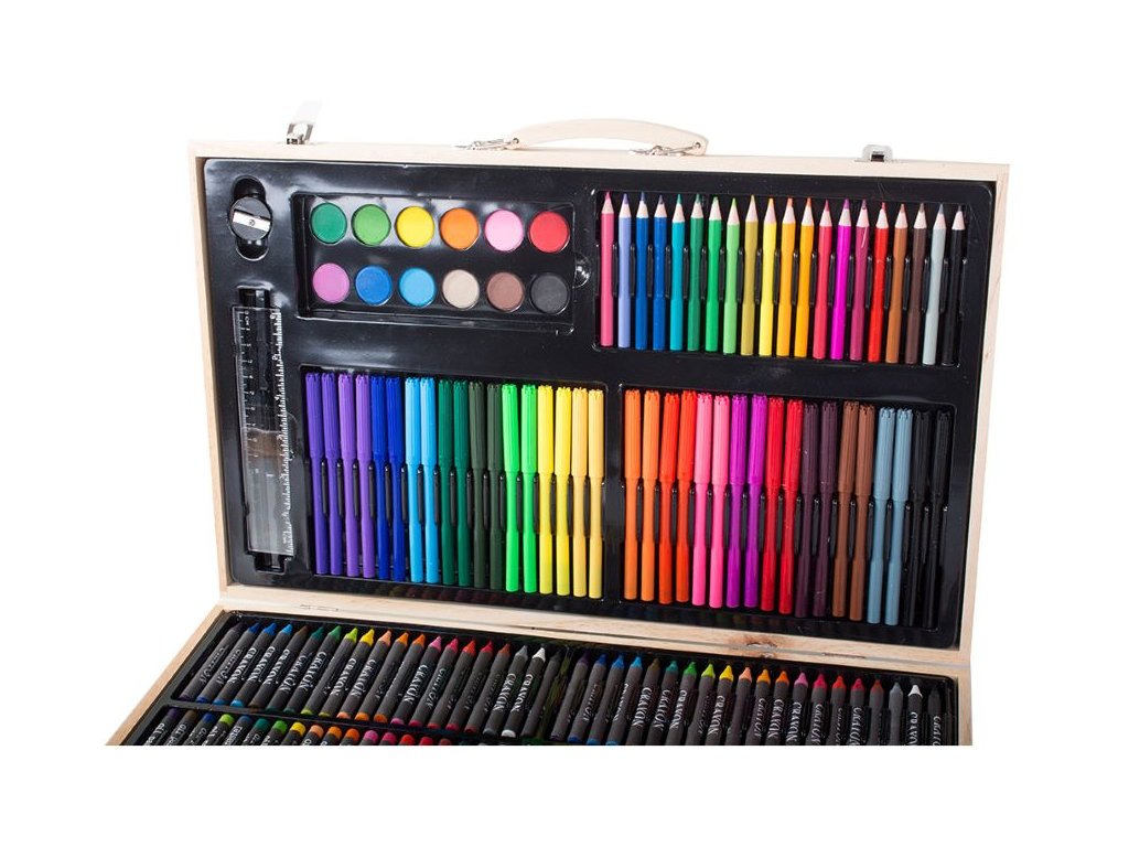 Umělecká sada na malování, dřevěný kufr, 180ks prvků