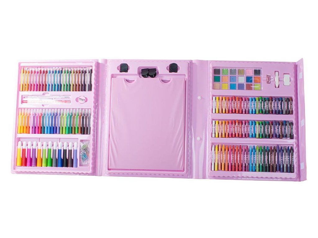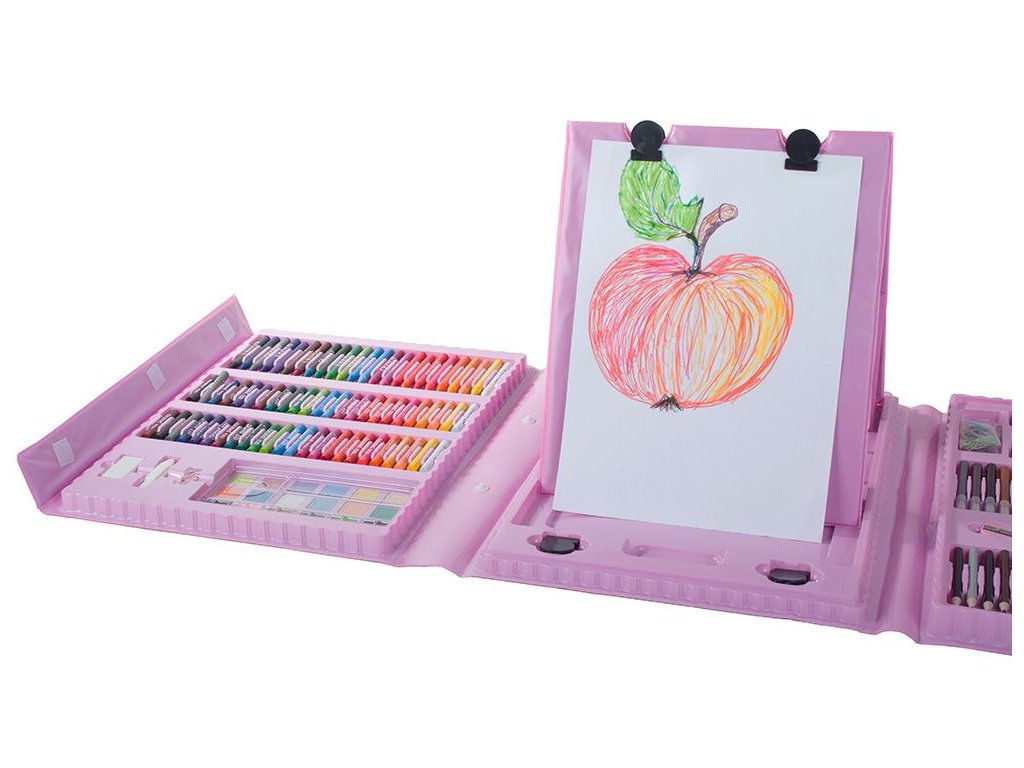 Umělecká sada na malování v kufru 208ks, malířský kufr, růžová, modrá