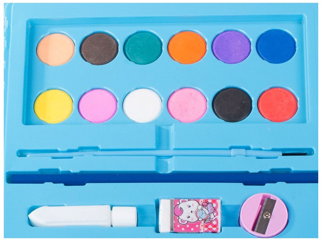 Umělecká sada na malování v kufru 68 ks - modrá