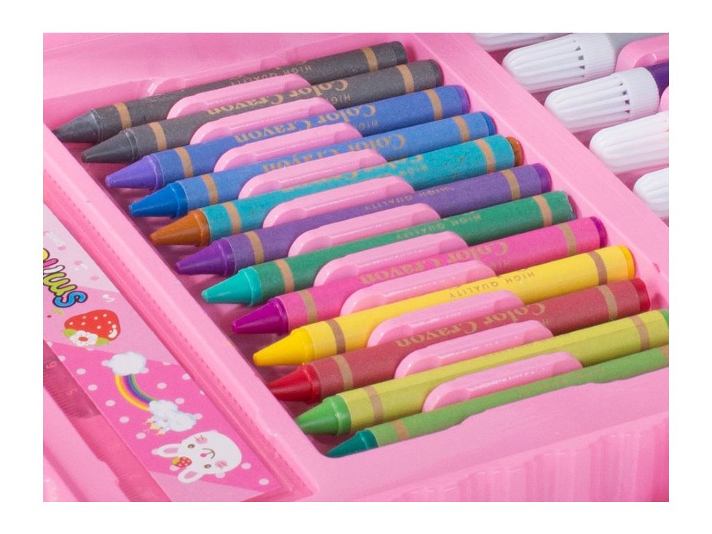 Umělecká sada na malování v kufru 68 ks - růžová