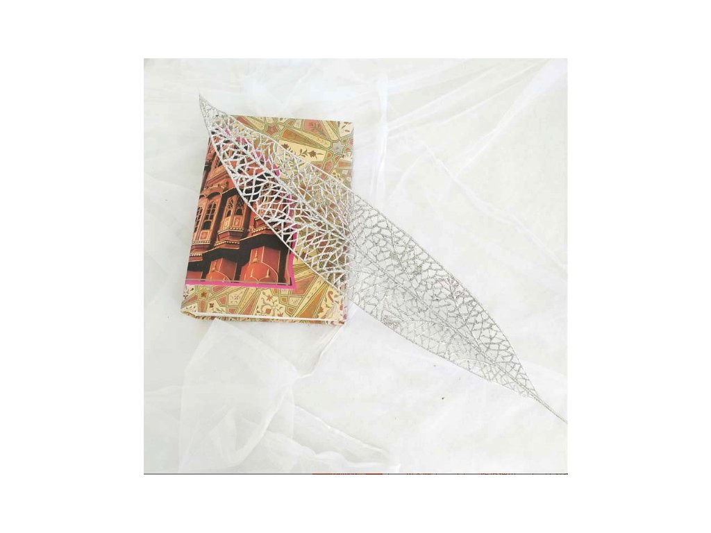 Umělý list se stříbrným brokátem 50 x 8 cm
