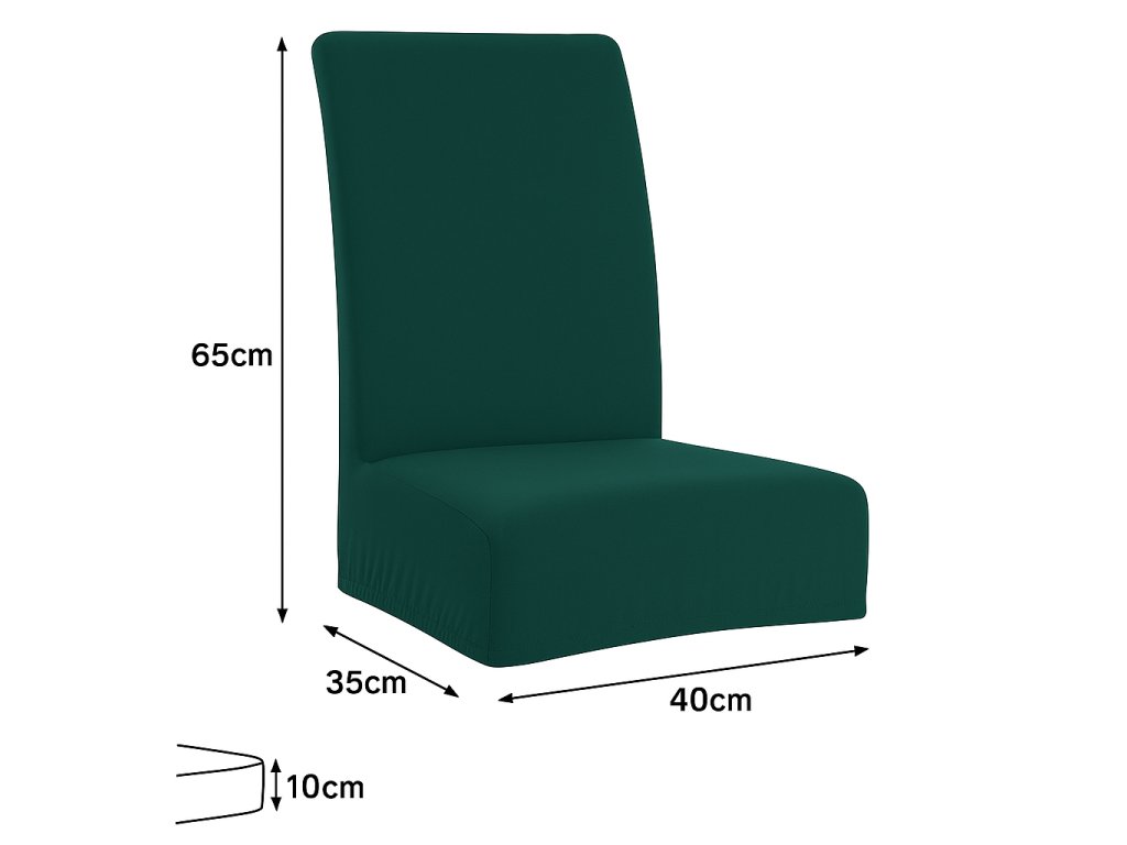 Proměňte vzhled své jídelny během chvilky! Tmavě zelené elastické potahy na židle jsou skvělým řešením pro každého, kdo chce ochránit své židle a zároveň dodat interiéru styl a eleganci. Potahy jsou univerzální velikosti (65 × 40 × 35 cm) a hodí se pro většinu běžných židlí dostupných na trhu.