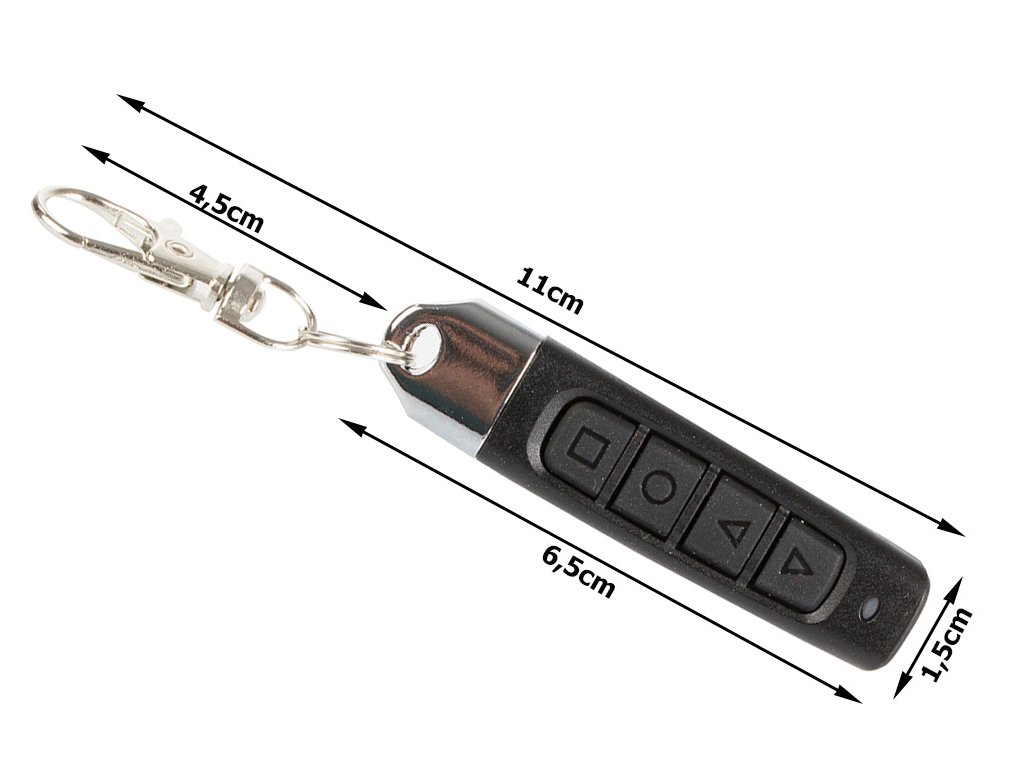 Univerzální samokopírovací dálkový ovladač vám umožní zkopírovat signál na bránu, alarm apod. Má čtyři programovatelná tlačítka. Díky pohyblivému krytu tlačítka zabrání nechtěnému stisknutí.