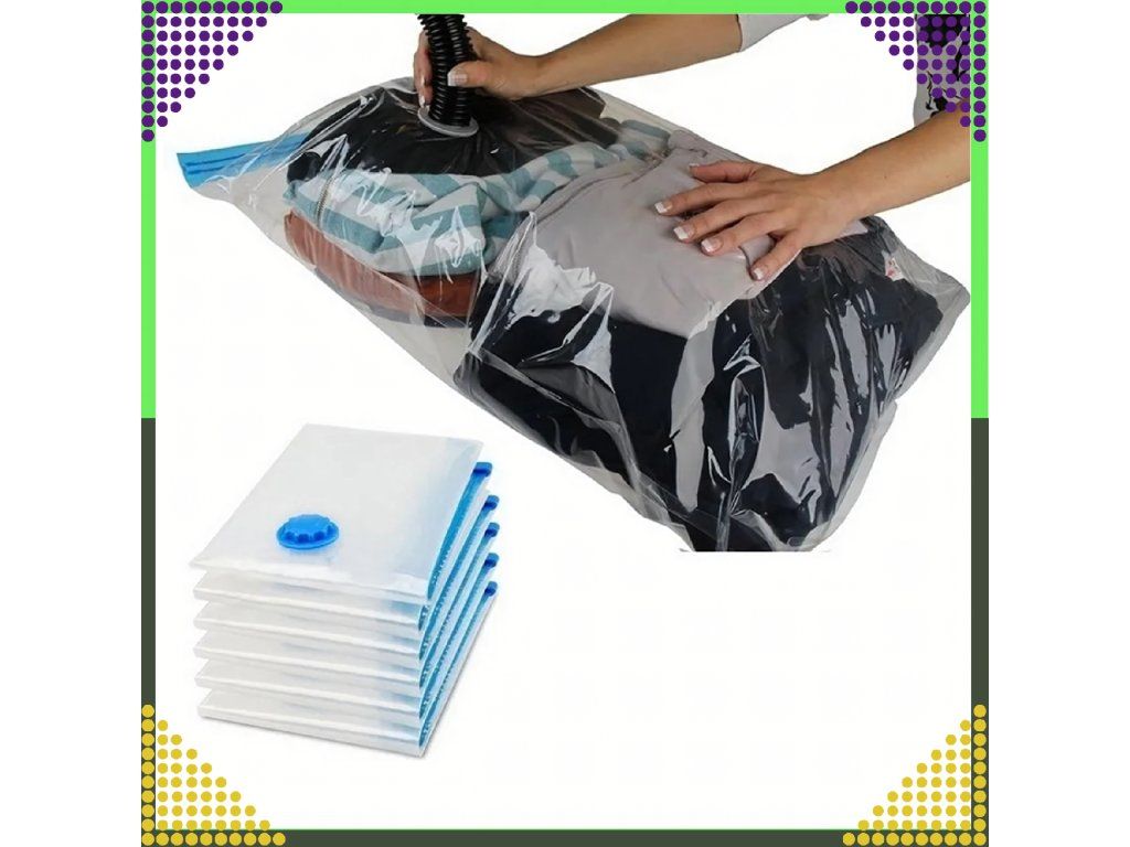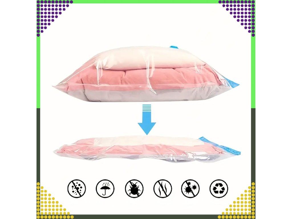 ⭐ Skladování různých předmětů: Vakuové pytle neslouží pouze ke skladování oblečení. Můžete v nich uchovávat také deky, ložní prádlo, polštáře, hračky nebo jiné věci, které chcete na nějakou dobu schovat.
